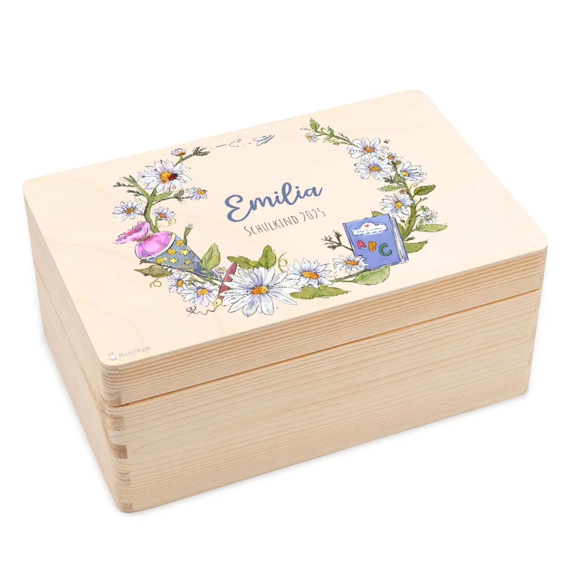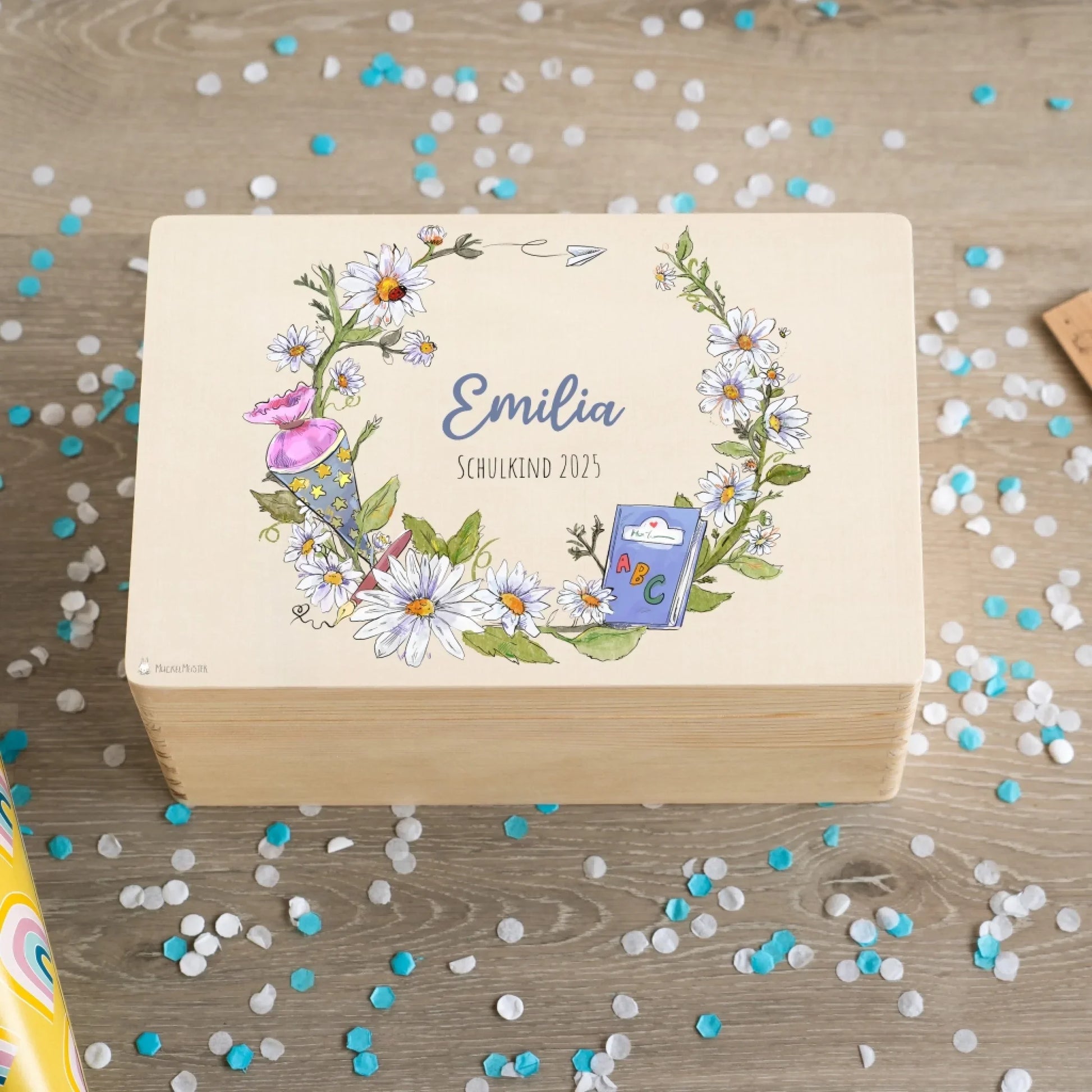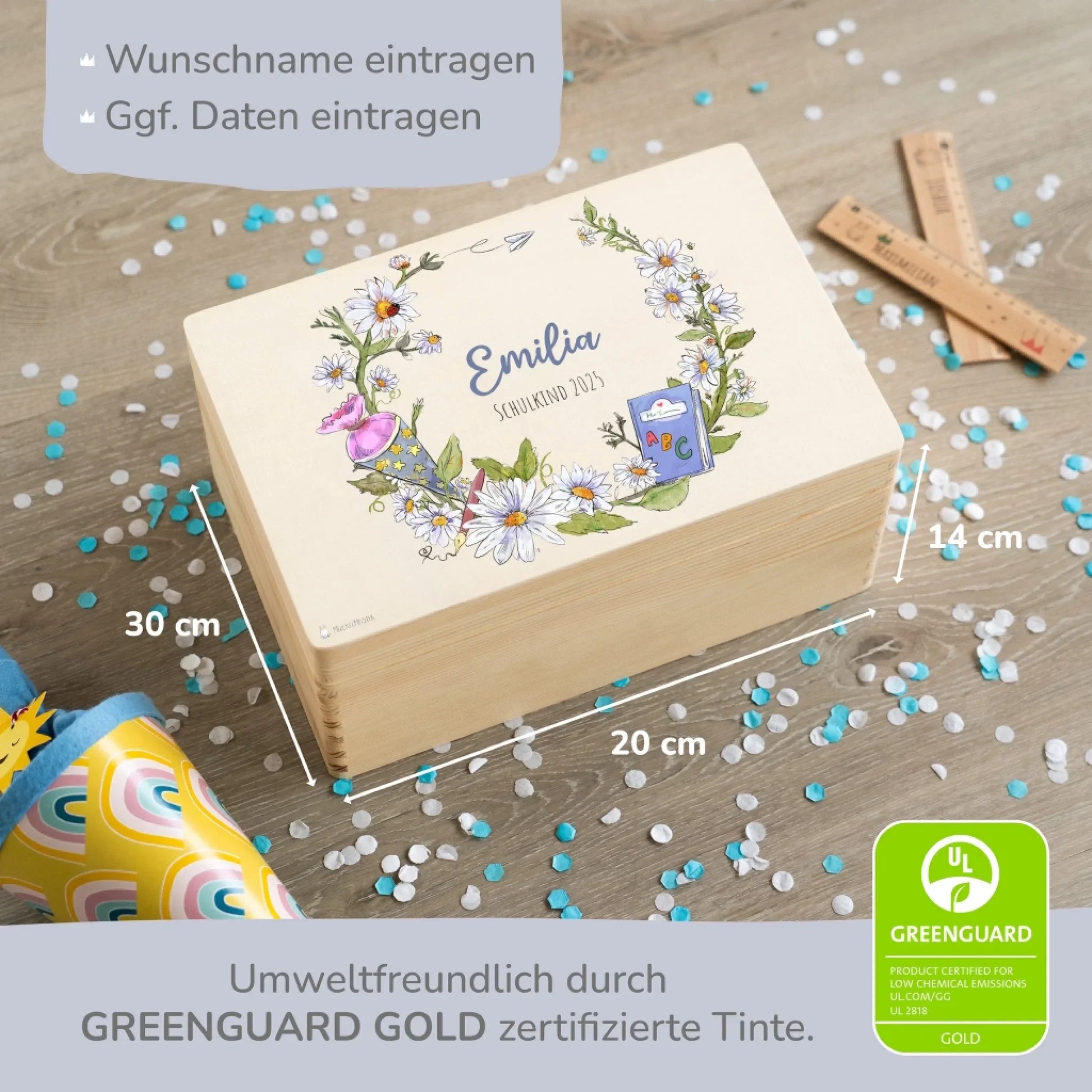 Feiern Sie die besonderen Momente im Leben eines Kindes mit unseren wunderschönen, personalisierten Erinnerungskisten aus Holz. Diese liebevoll gestaltete Kiste ist das ideale Geschenk zur Einschulung und zum Schulstart und bietet einen liebevollen Aufbewahrungsort für all die kleinen Schätze und Erinnerungen, die in den ersten Lebensjahren gesammelt werden.
