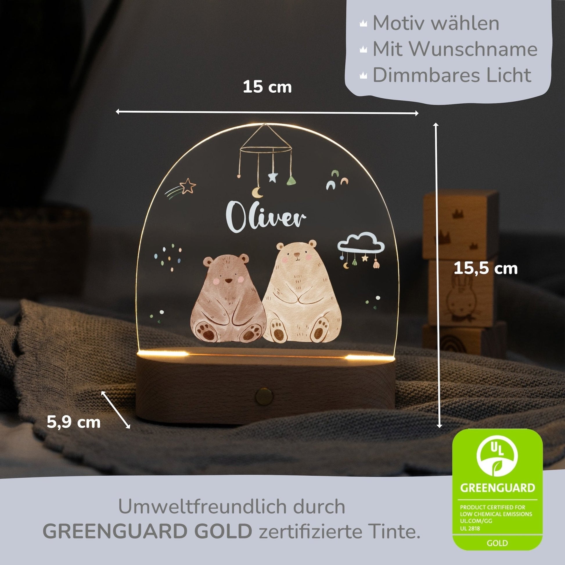 Personalisiertes Nachtlicht „Bärenfreunde“ – Sanftes Licht für kuschelige Träume 🐻✨
