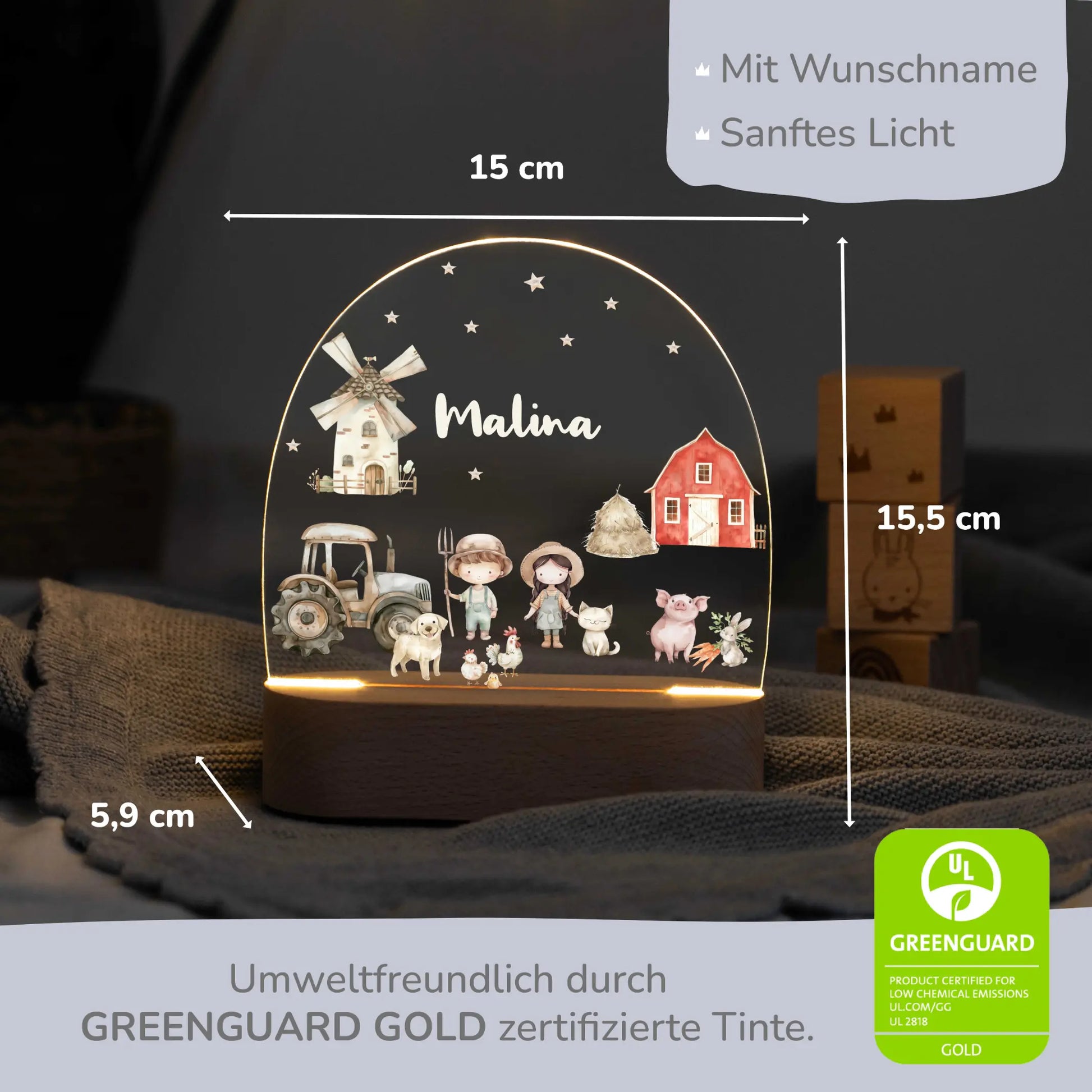 LED Nachtlicht Kinder personalisiert - Bauernhof