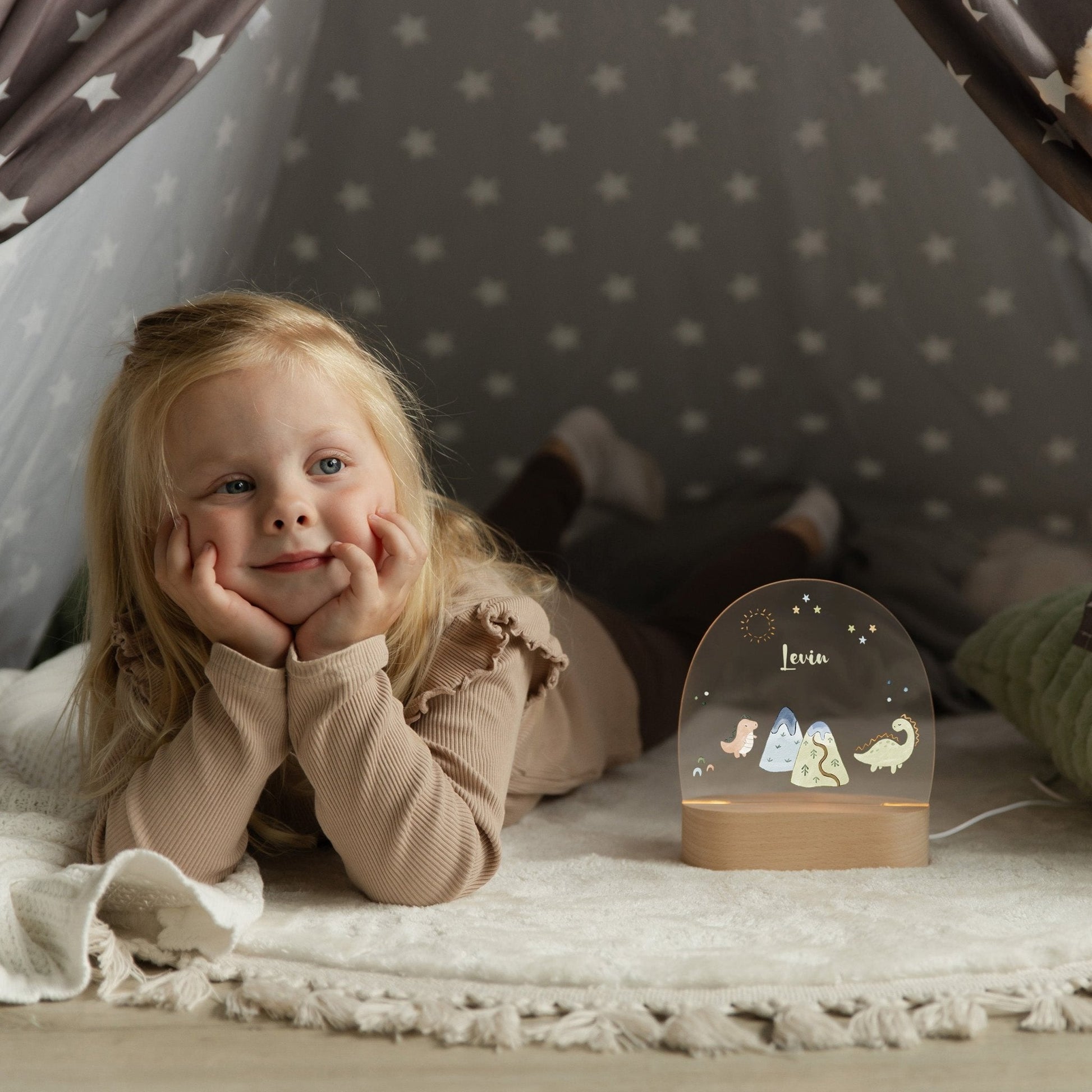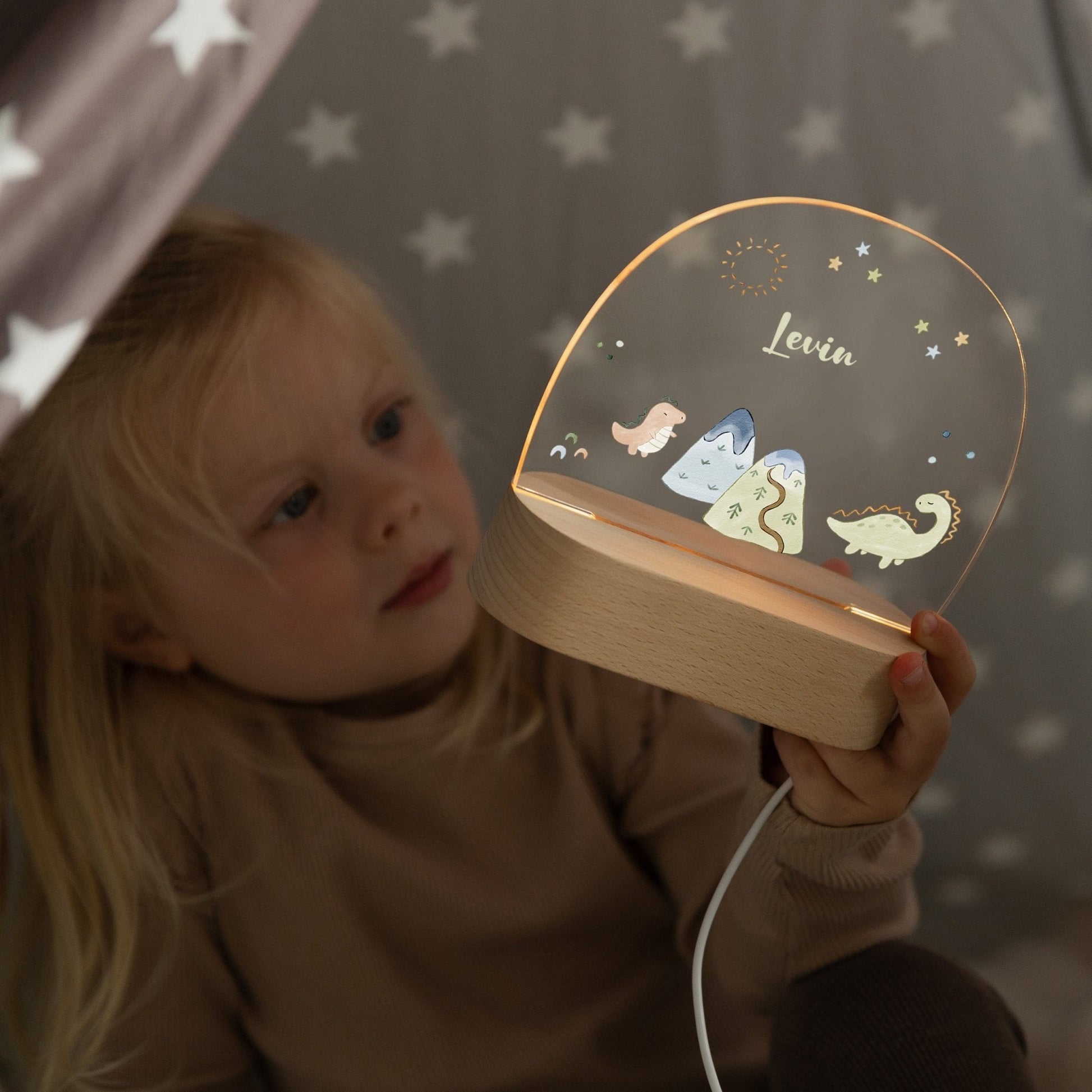 Personalisiertes Nachtlicht „Dino-Freunde“ – Magisches Licht für kleine Entdecker 🦖✨