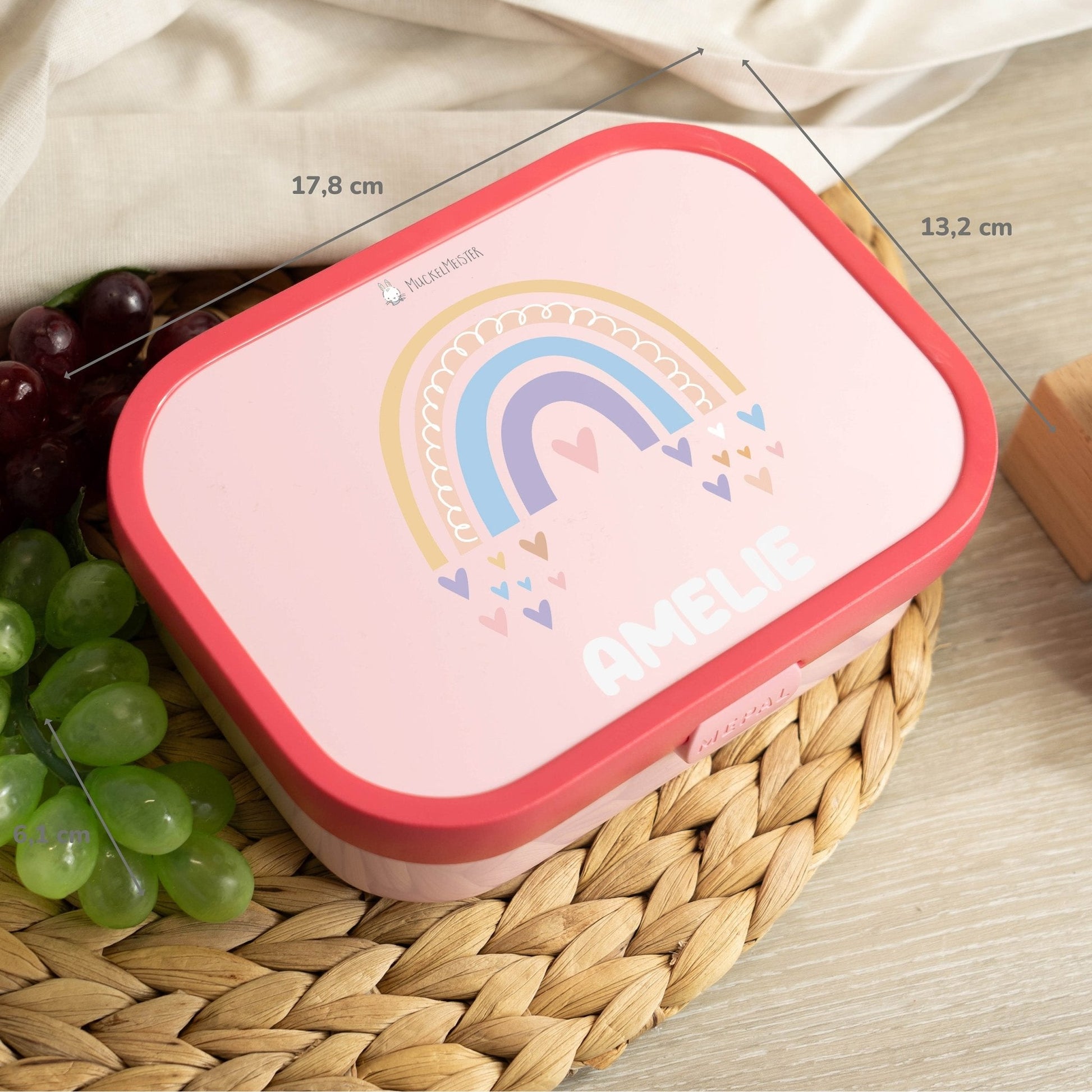 Diese Mepal Brotdose Personalisiert ist alles andere als eine gewöhnliche Lunchbox. Mit deinem Namen und dem Regenbogen Motiv für Mädchen verleiht sie einen besonderen Touch, der sie unverwechselbar macht. Aus hochwertigem Material gefertigt, ist sie nicht nur praktisch, sondern auch besonders einzigartig und individuell. Egal ob in der Schule, im Kindergarten oder unterwegs – sie begleitet dich stilsicher zu jeder Mahlzeit, wann und wo auch immer du sie genießen möchtest!