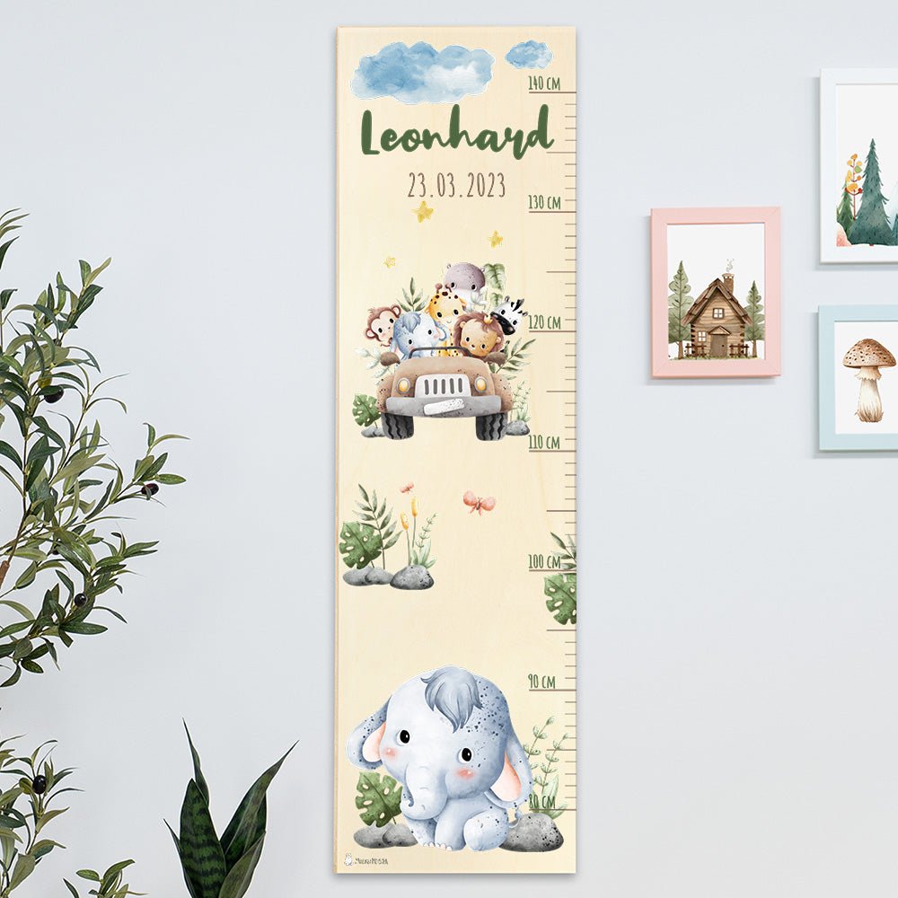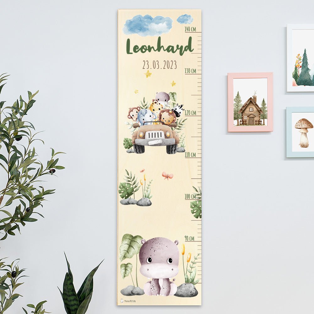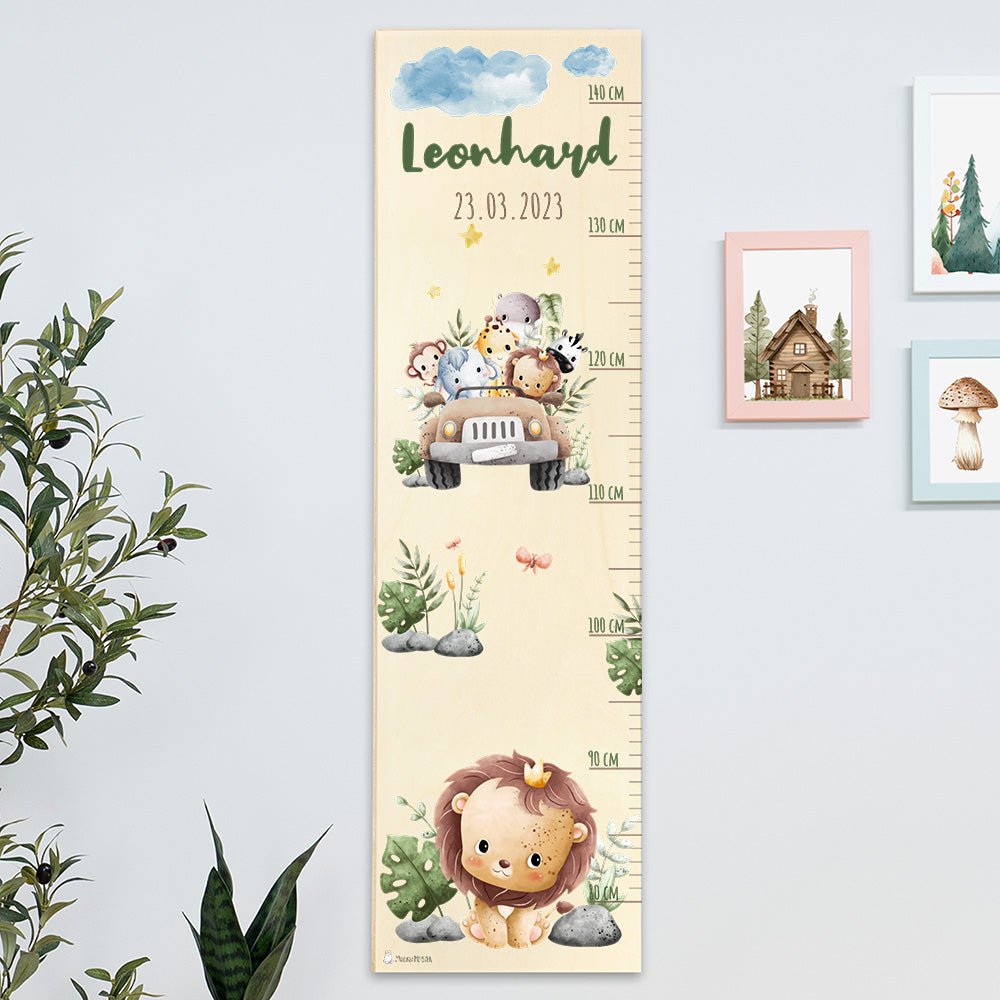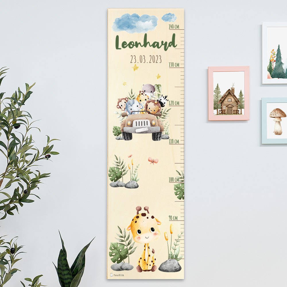 Begib dich auf eine spannende Safari durch die Savanne mit unserer Holz-Messlatte mit einem individuellen Motiv Affe mit Flugzeug! Diese liebevoll gestaltete Messlatte ist nicht nur ein praktisches Werkzeug, um das Wachstum deines kleinen Entdeckers zu verfolgen, sondern auch eine aufregende Dekoration, die jedes Kinderzimmer mit Abenteuerlust und Naturverbundenheit erfüllt.