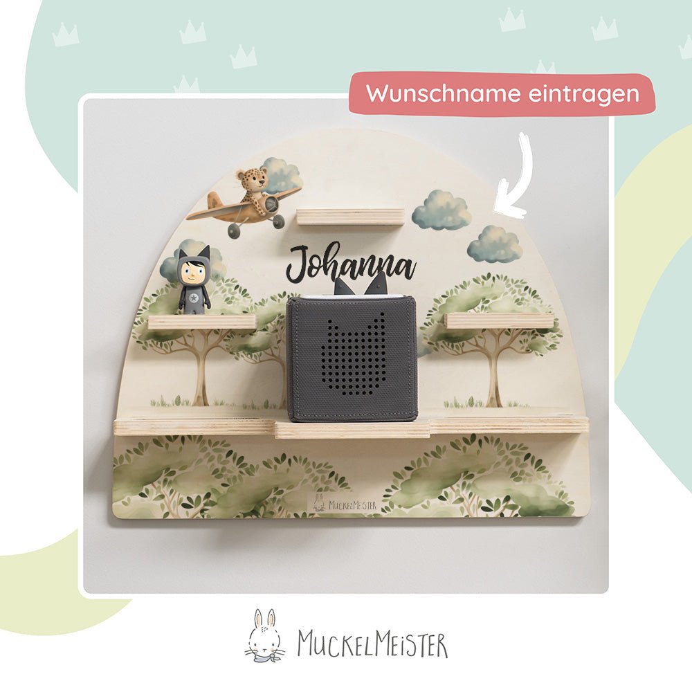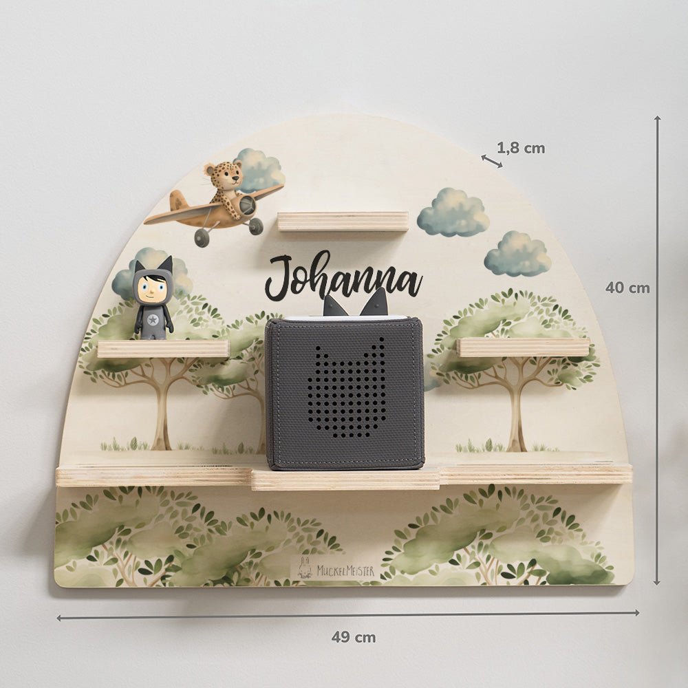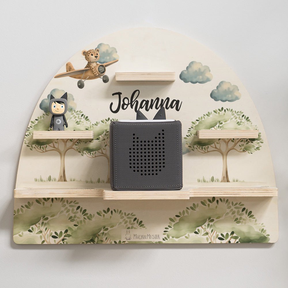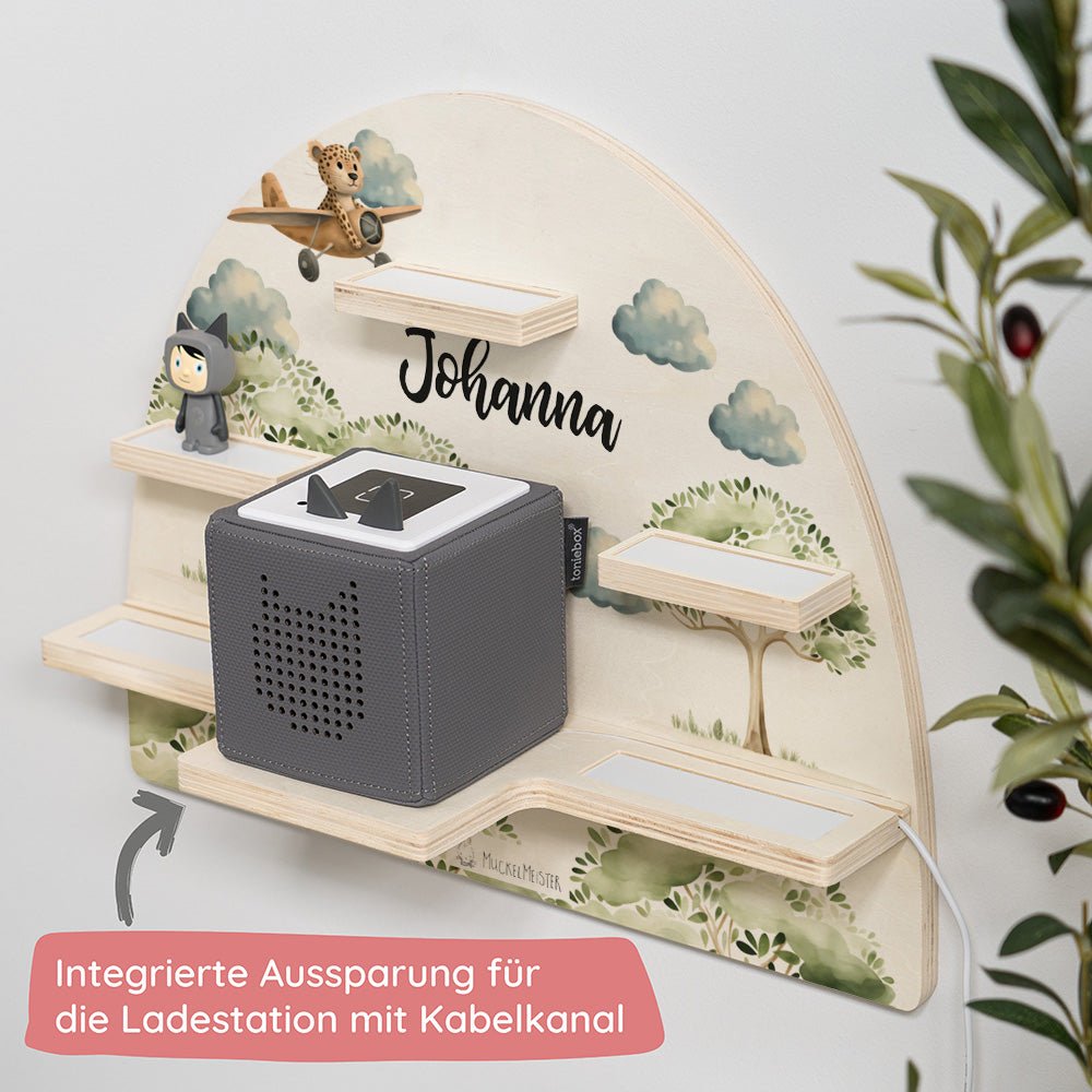 Auf der Suche nach einer stilvollen und funktionalen Aufbewahrungslösung für die Tonie-Figuren deines Kindes? Unser Tonie Regal aus Holz mit einem bezaubernden Astronauten-Motiv ist die perfekte Wahl! Dieses liebevoll gestaltete Regal bietet nicht nur ausreichend Platz für die Tonie-Figuren, sondern ist auch ein charmantes Dekorationsstück, das jedes Kinderzimmer bereichert.