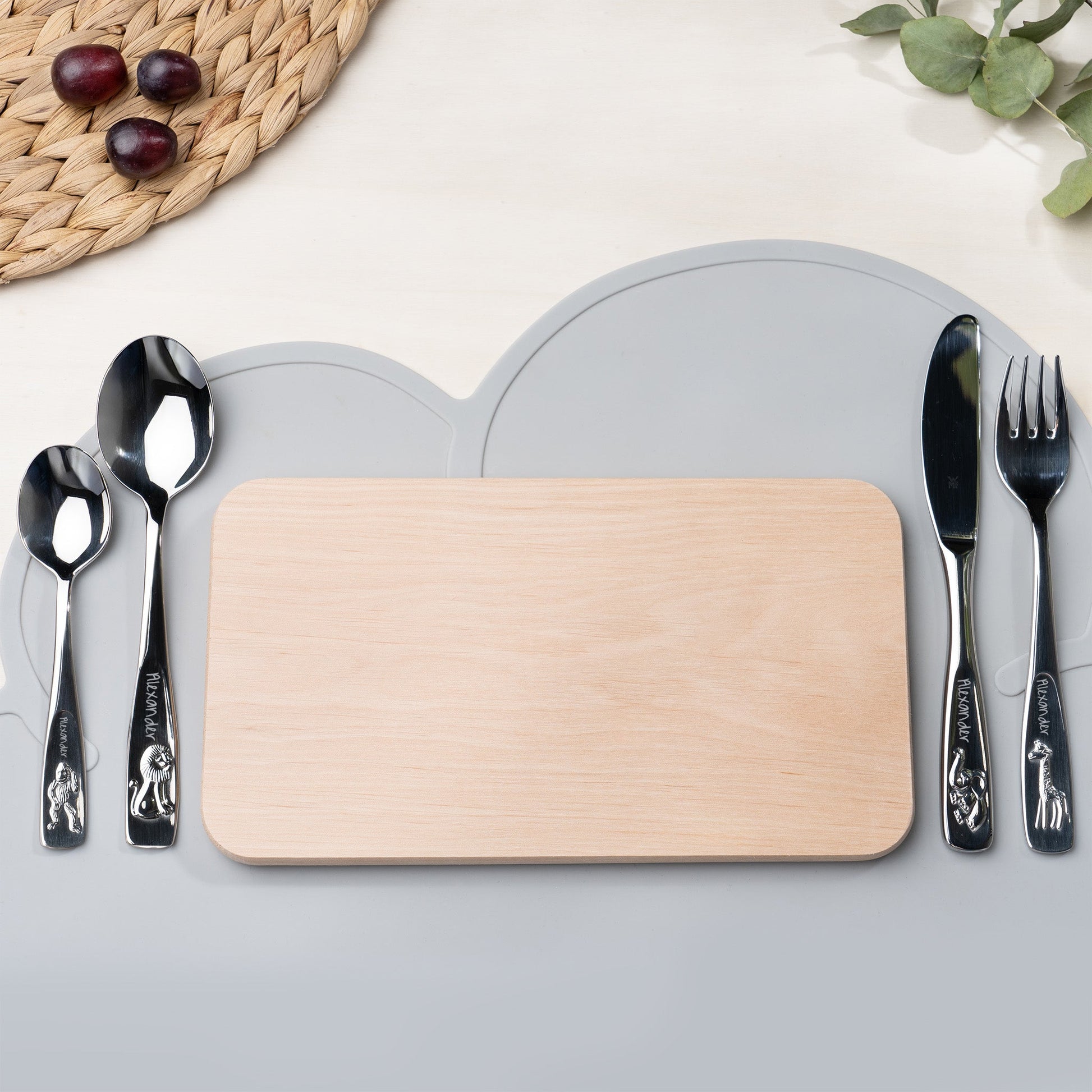 Besonderheit: Das 4-teilige Kinderbesteck ist für Kinder ab 3+ Jahren geeignet. Durch eine angepasste Form und Größe wird das eigenständige Essen kinderleicht.