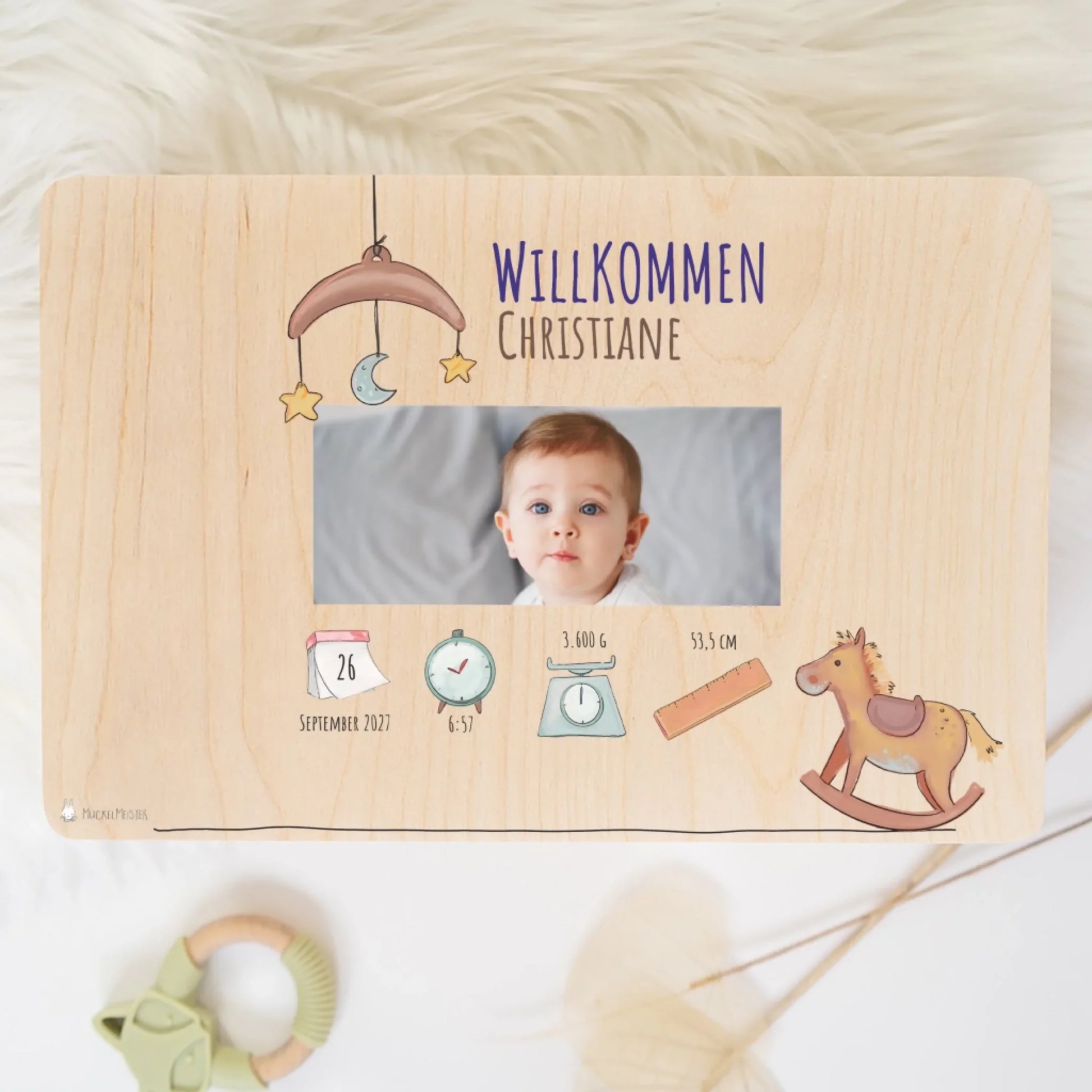 Diese personalisierte Erinnerungskiste ist mehr als nur eine Aufbewahrungsbox – sie ist ein liebevolles Andenken, das die kostbarsten Momente des Lebens festhält. Durch die Möglichkeit der individuellen Gestaltung wird jedes Stück zu einem einzigartigen Kunstwerk, das speziell für den kleinen Schatz in Ihrem Leben geschaffen wurde.