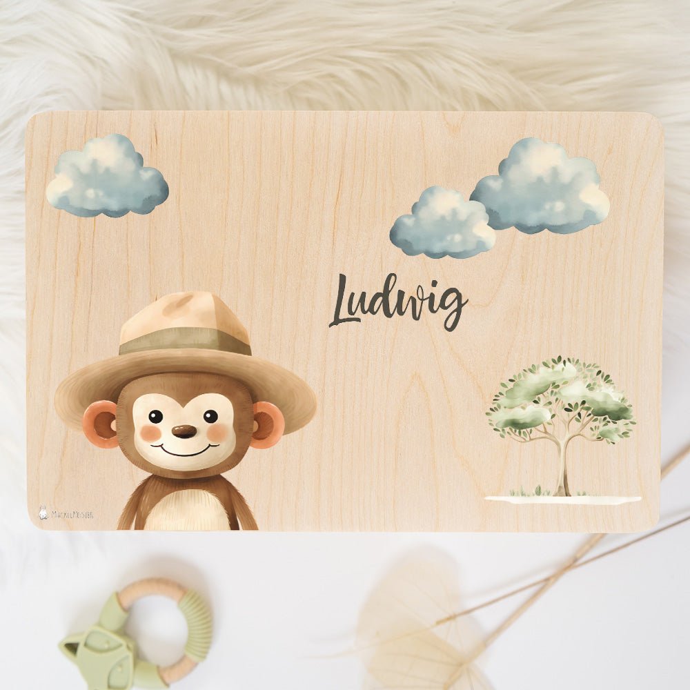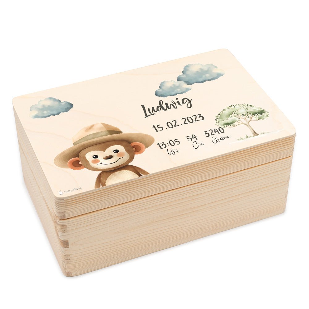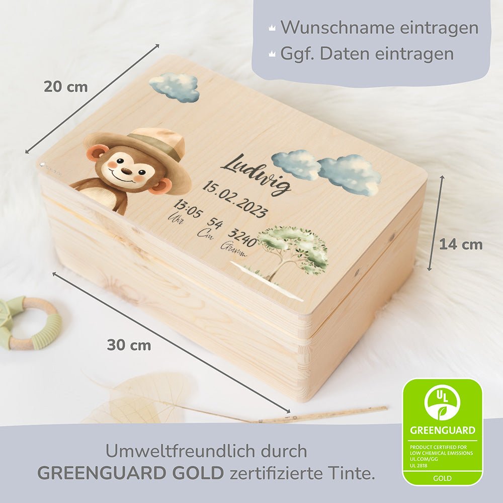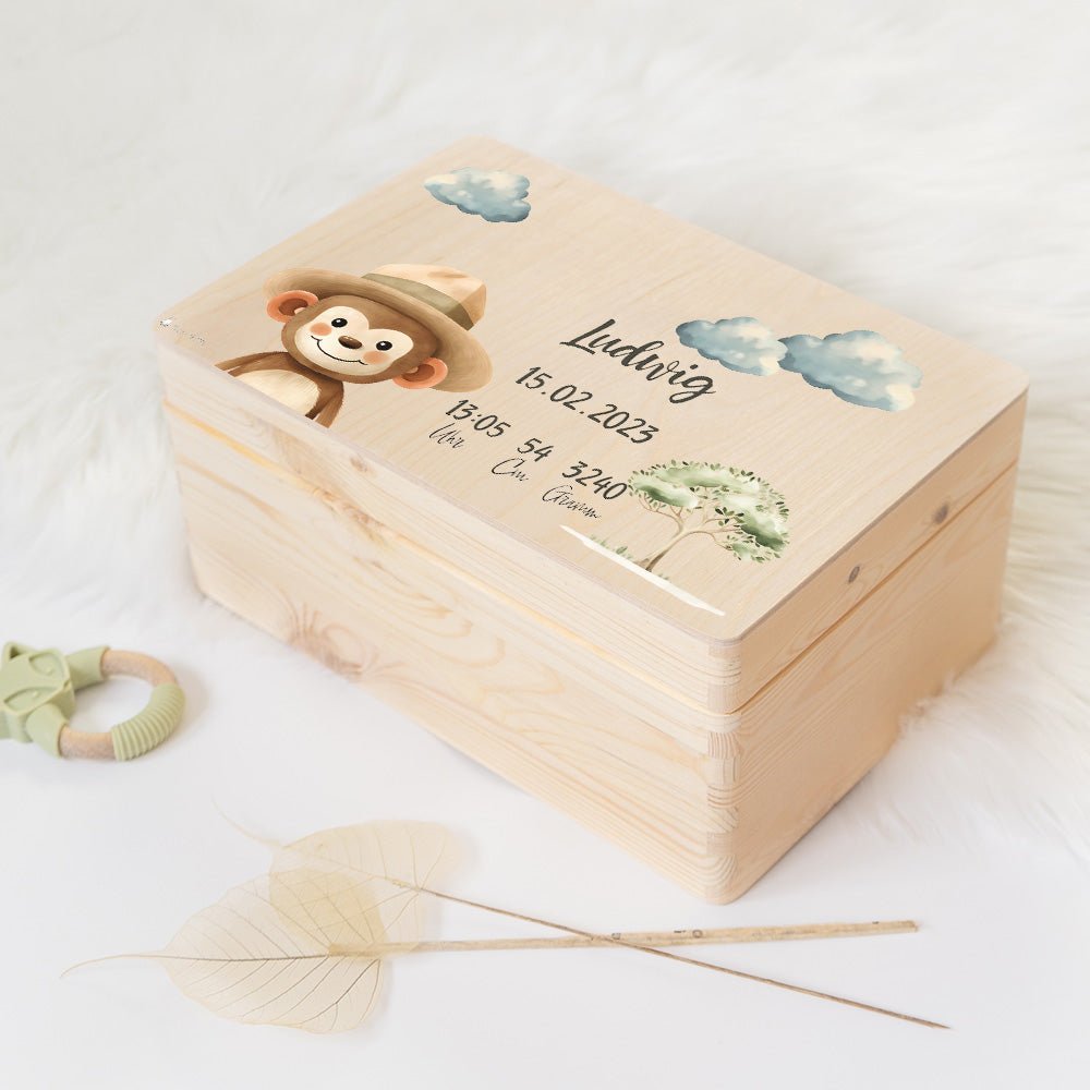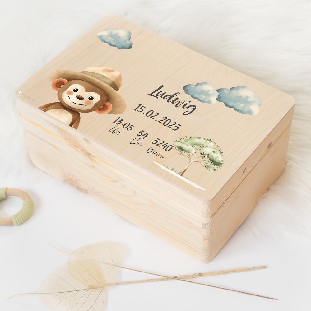 Affe mit Hut Motiv: Das Highlight dieser Kiste ist der individuelle Druck, der einen niedlichen Affen mit Hut zeigt. Der Affe mit Hut lässt das Kind in eine spielerische Tierwelt voller Möglichkeiten eintauchen.