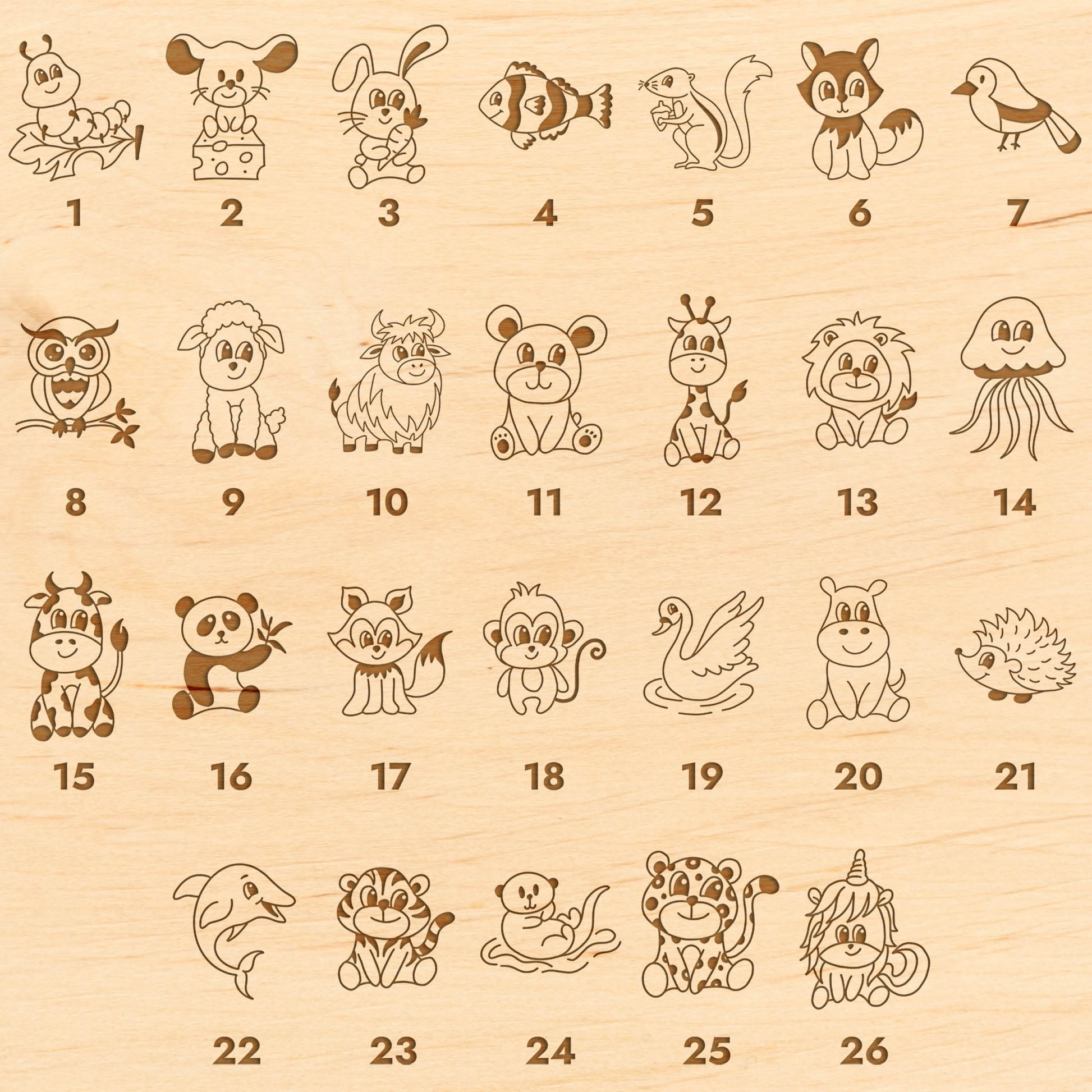 Klicke auf "Jetzt Anpassen" und wähle aus 26 süßen Tiermotiven und deinem Wunschnamen für ein Personalisiertes Frühstücksbrettchen.