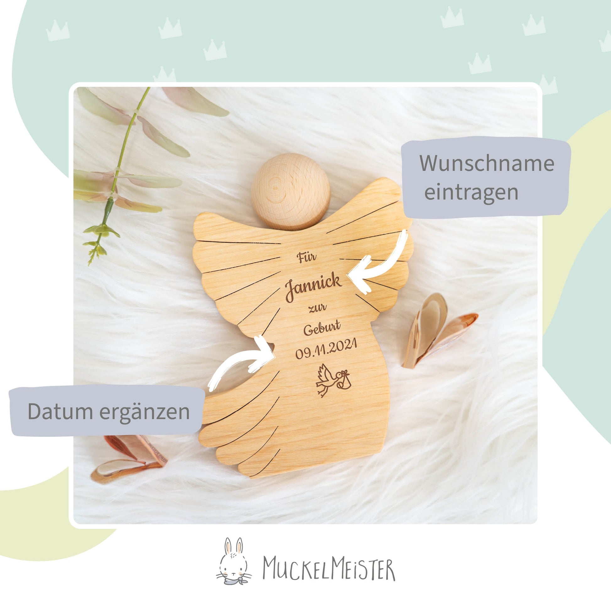 Mit diesem Produkt kombinieren wir traditionelle Handwerkskunst mit moderner Lasergravurtechnologie, um ein persönliches und bleibendes Geschenk für besondere Anlässe zu schaffen. Mit unserem süßen Geldscheinengel wird jedes Geldgeschenk zu einem unvergesslichen Highlight zu jeder Geburt.