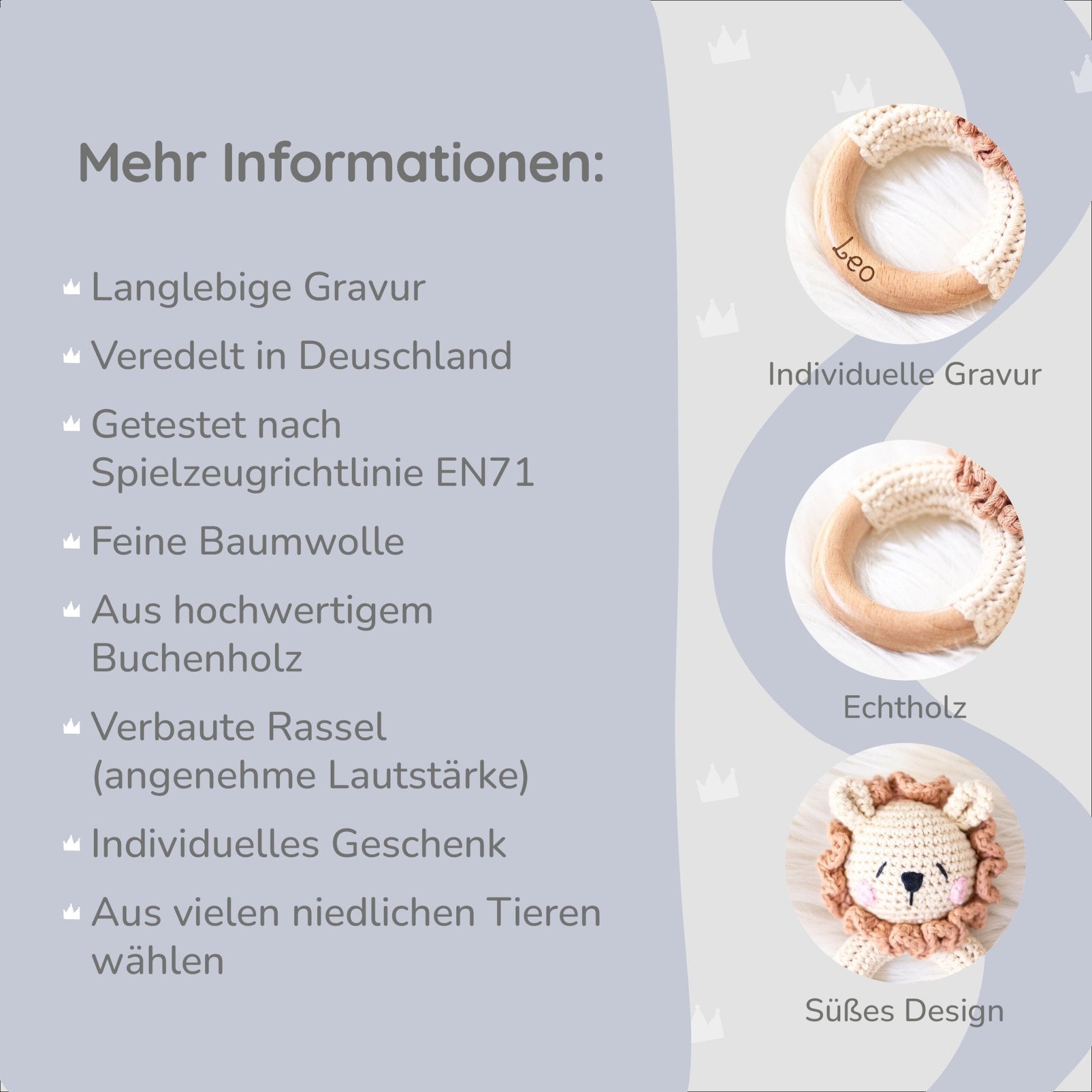 Personalisierter Greifling im Löwen-Design – Perfekt für kleine Entdecker!