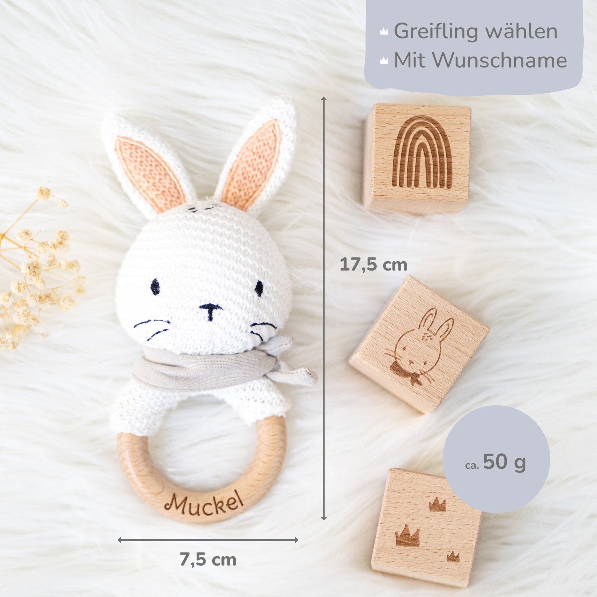 Personalisierter Greifling im Muckelmeister-Hasen-Design – Perfekt für kleine Entdecker!