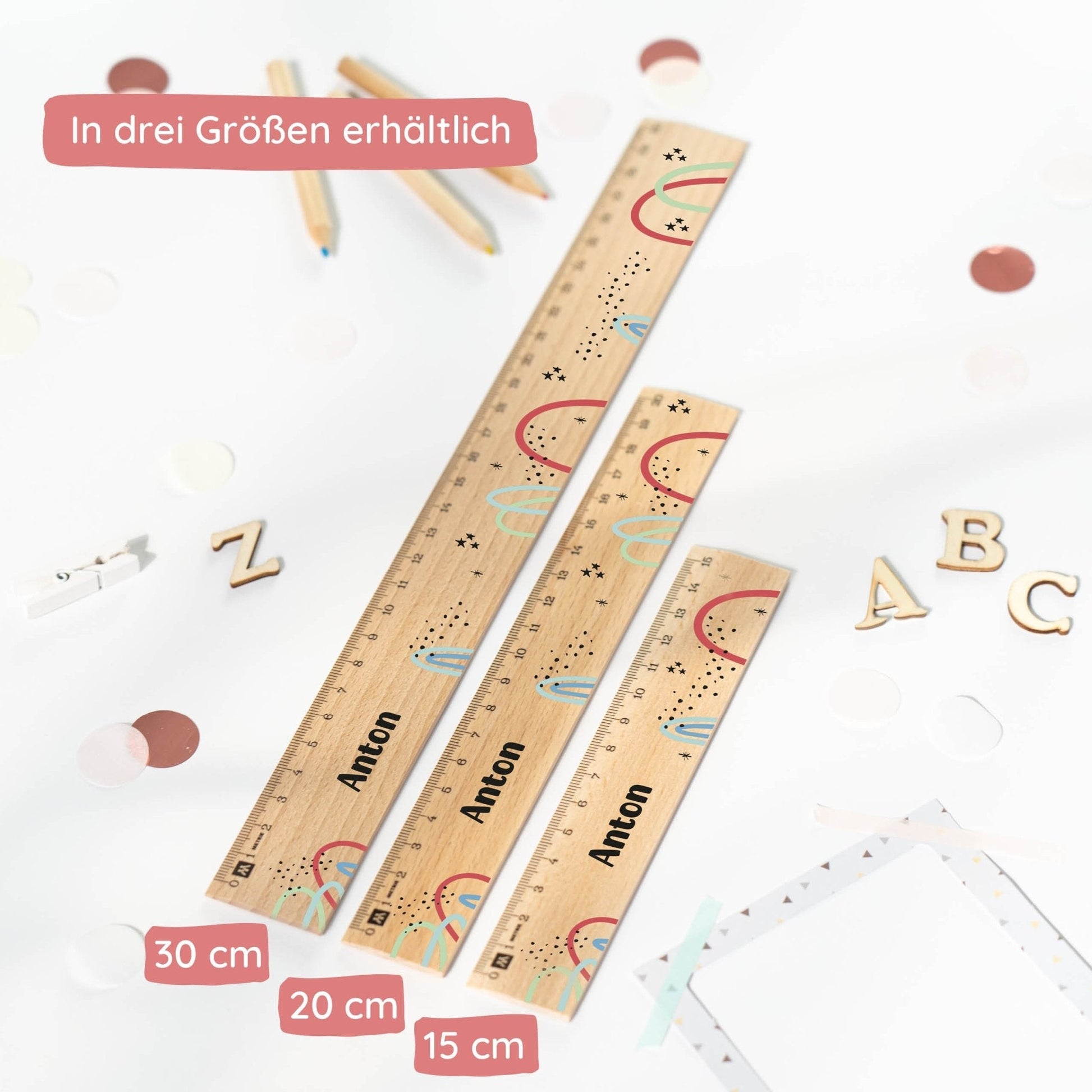Möchtest du das Lernen deines Kindes mit etwas Magie und Spaß verbinden? Unser Holz-Lineal mit einem farbenfrohen-Motiv ist genau das Richtige! Verfügbar in drei Größen – 15cm, 20cm und 30cm – ist dieses Lineal nicht nur ein praktisches Werkzeug, sondern auch eine süße Ergänzung für jeden Schreibtisch oder Mäppchen.