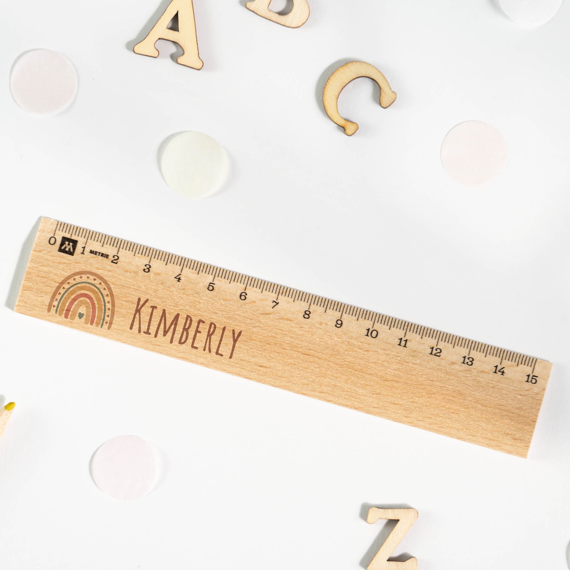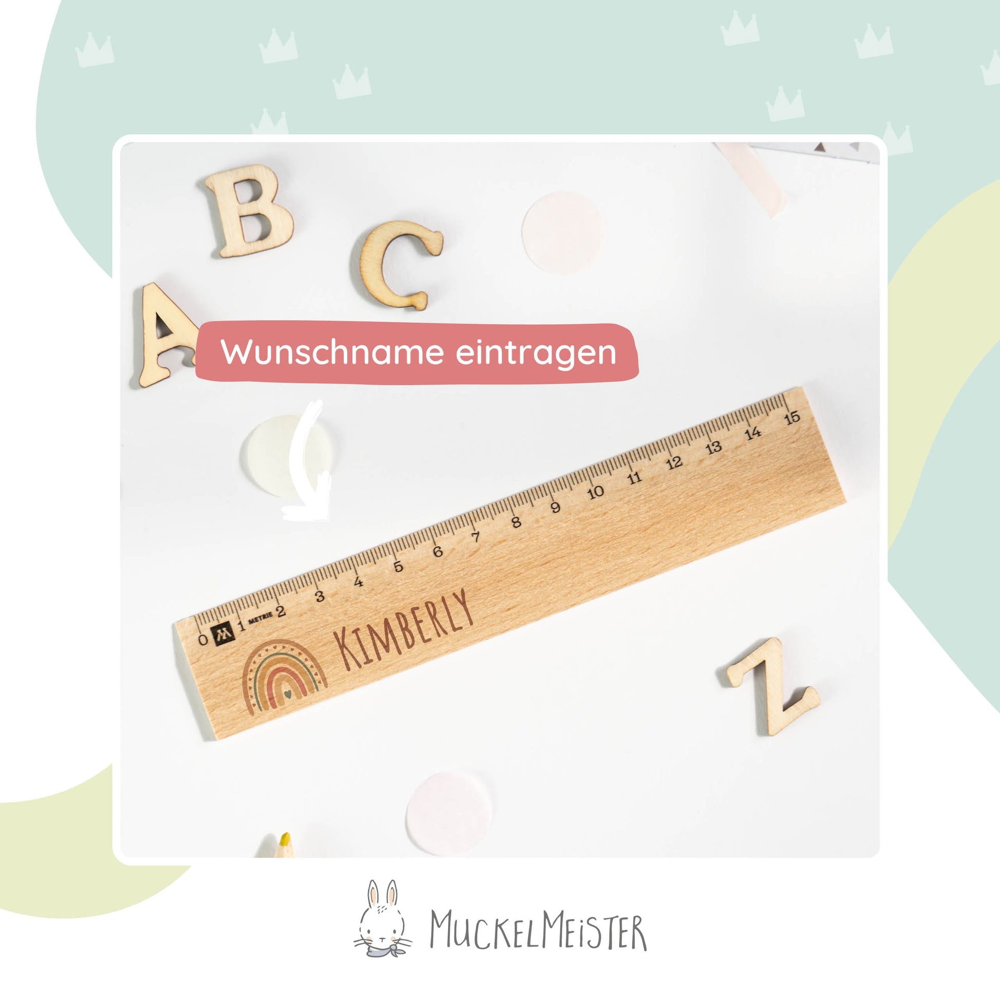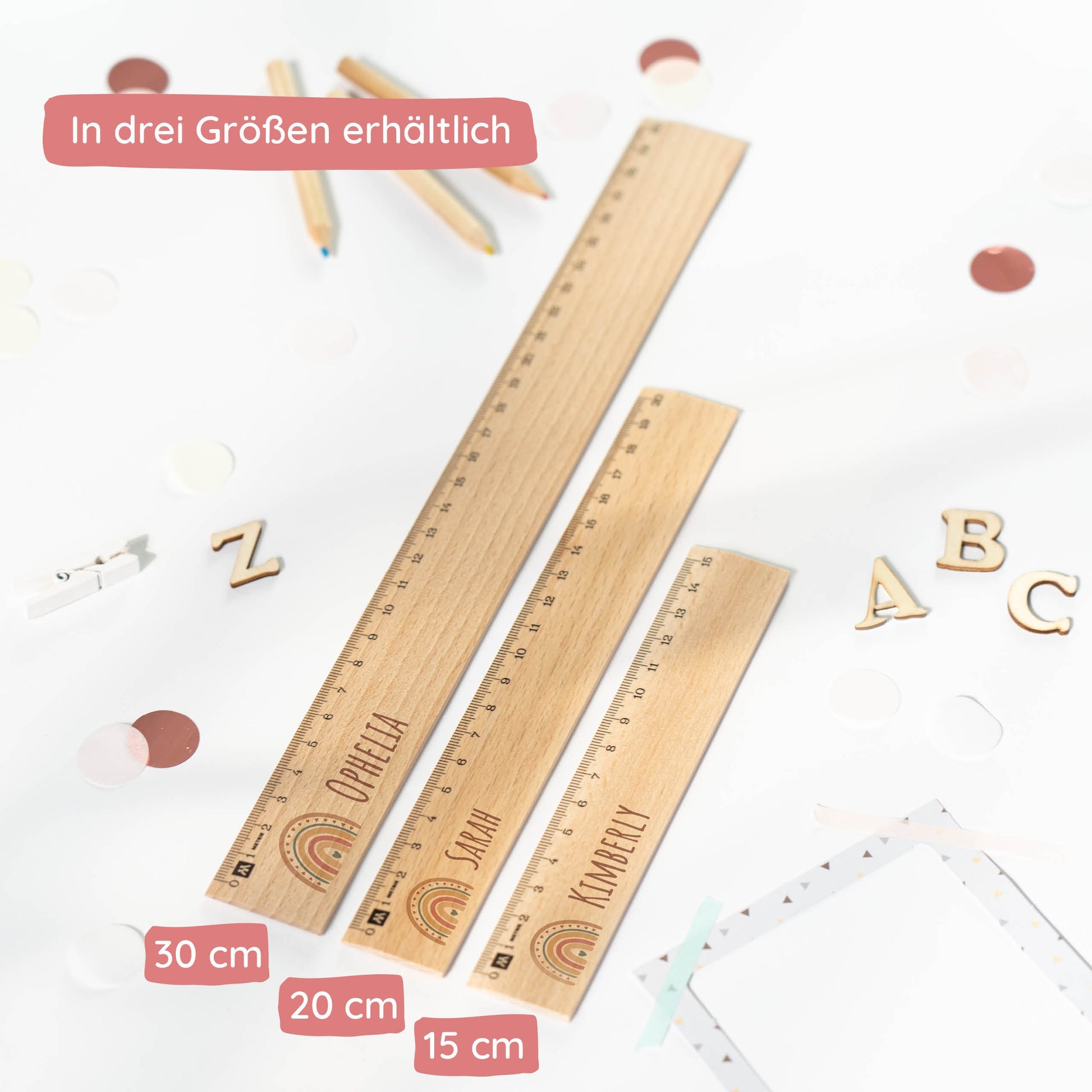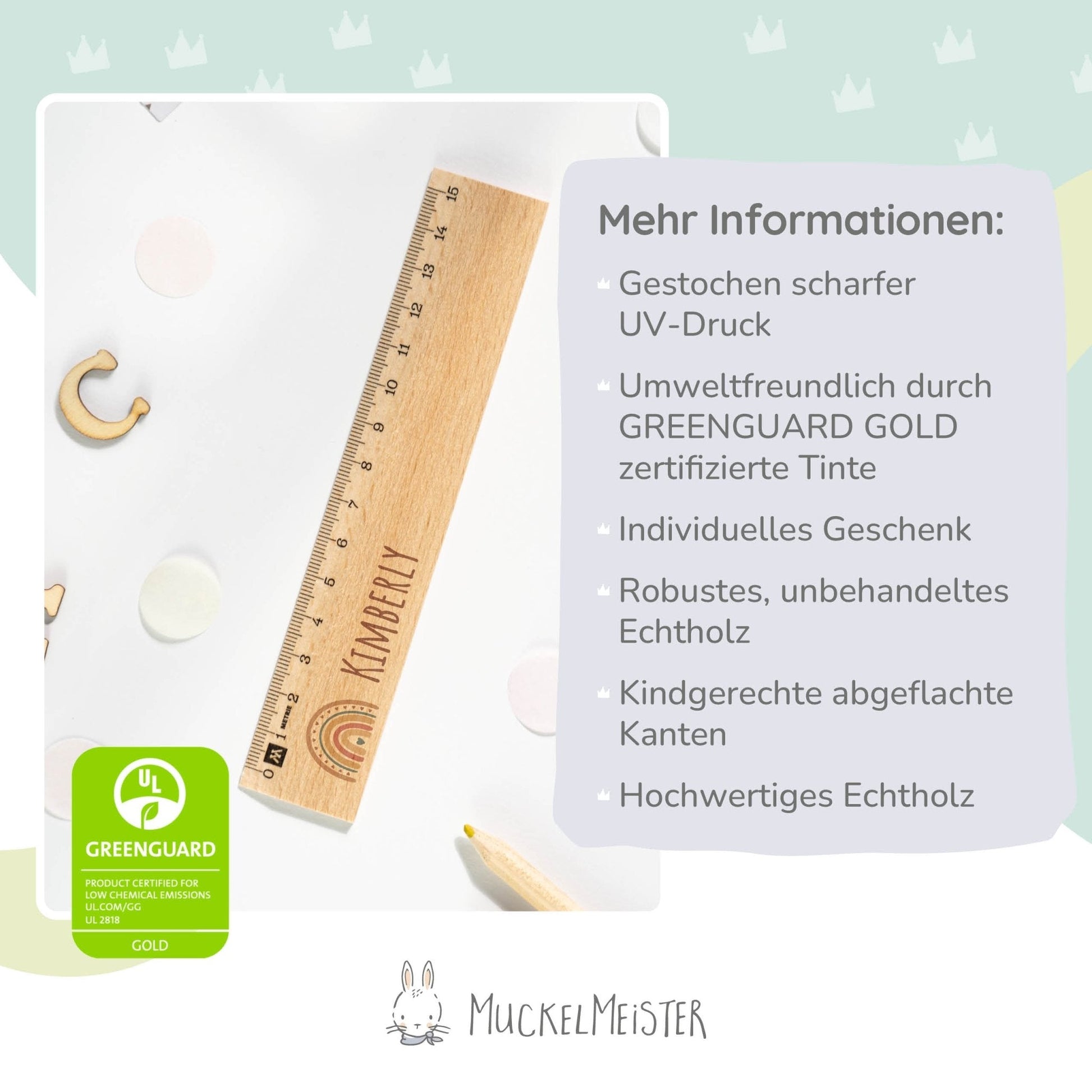 Unser Holz-Lineal mit Regenbogen-Motiv bringt nicht nur Farbenfreude in den Schulalltag deines Kindes, sondern auch eine positive und fröhliche Atmosphäre. Es ermutigt dein Kind, kreativ zu sein und mit Freude zu lernen, während es seine Hausaufgaben erledigt oder seine Kunstwerke gestaltet.