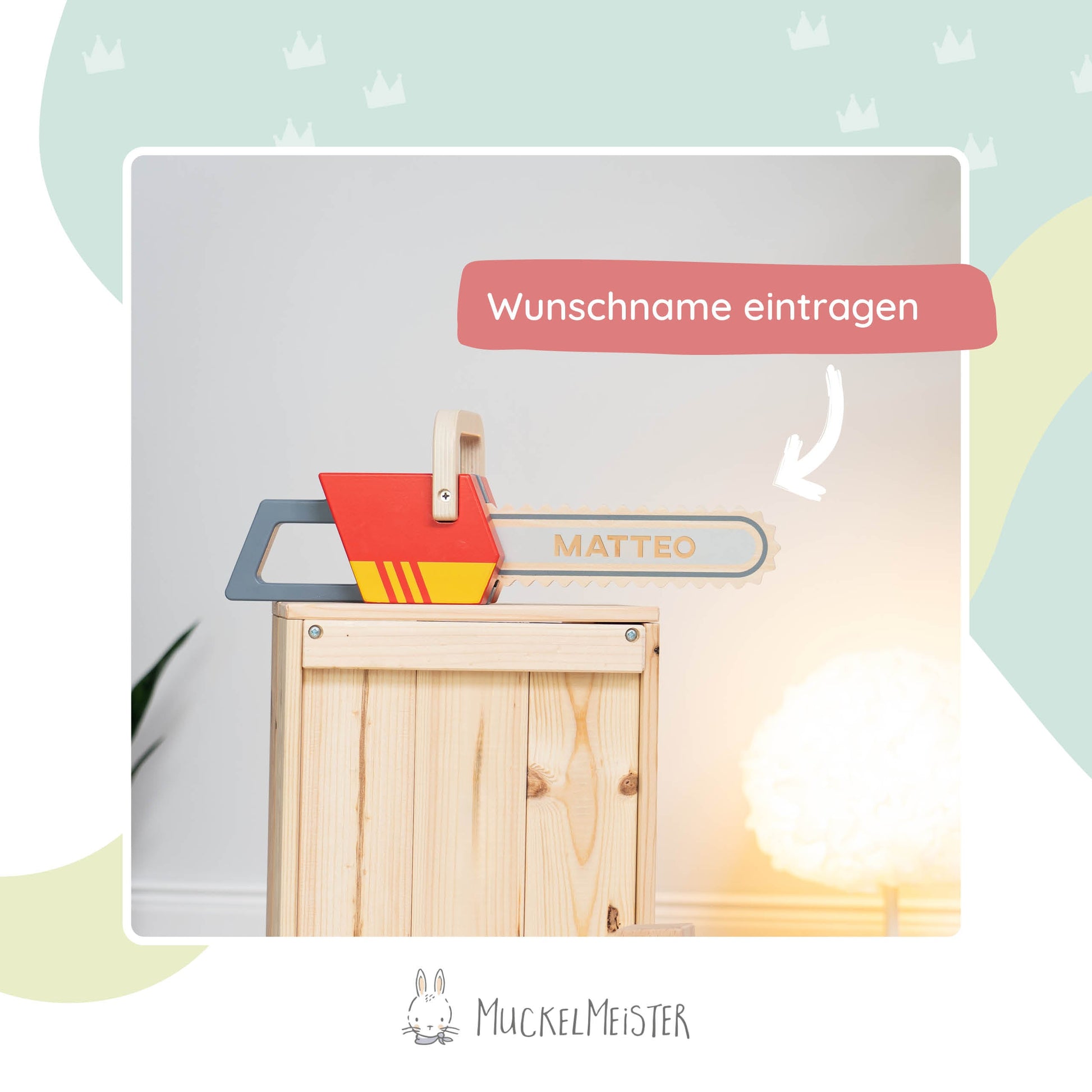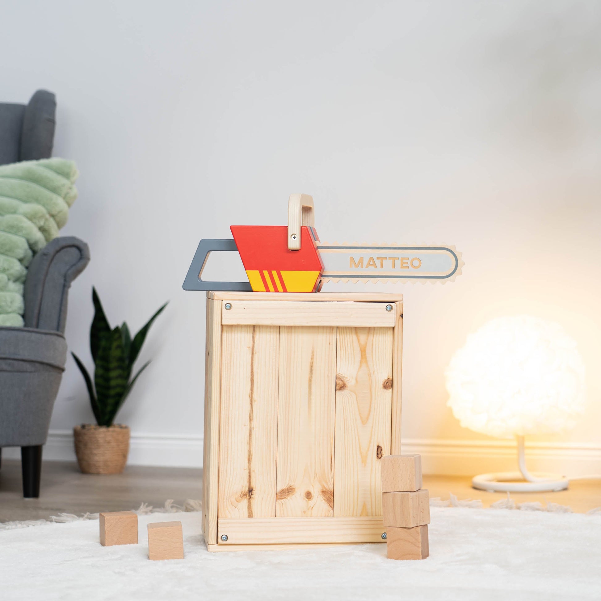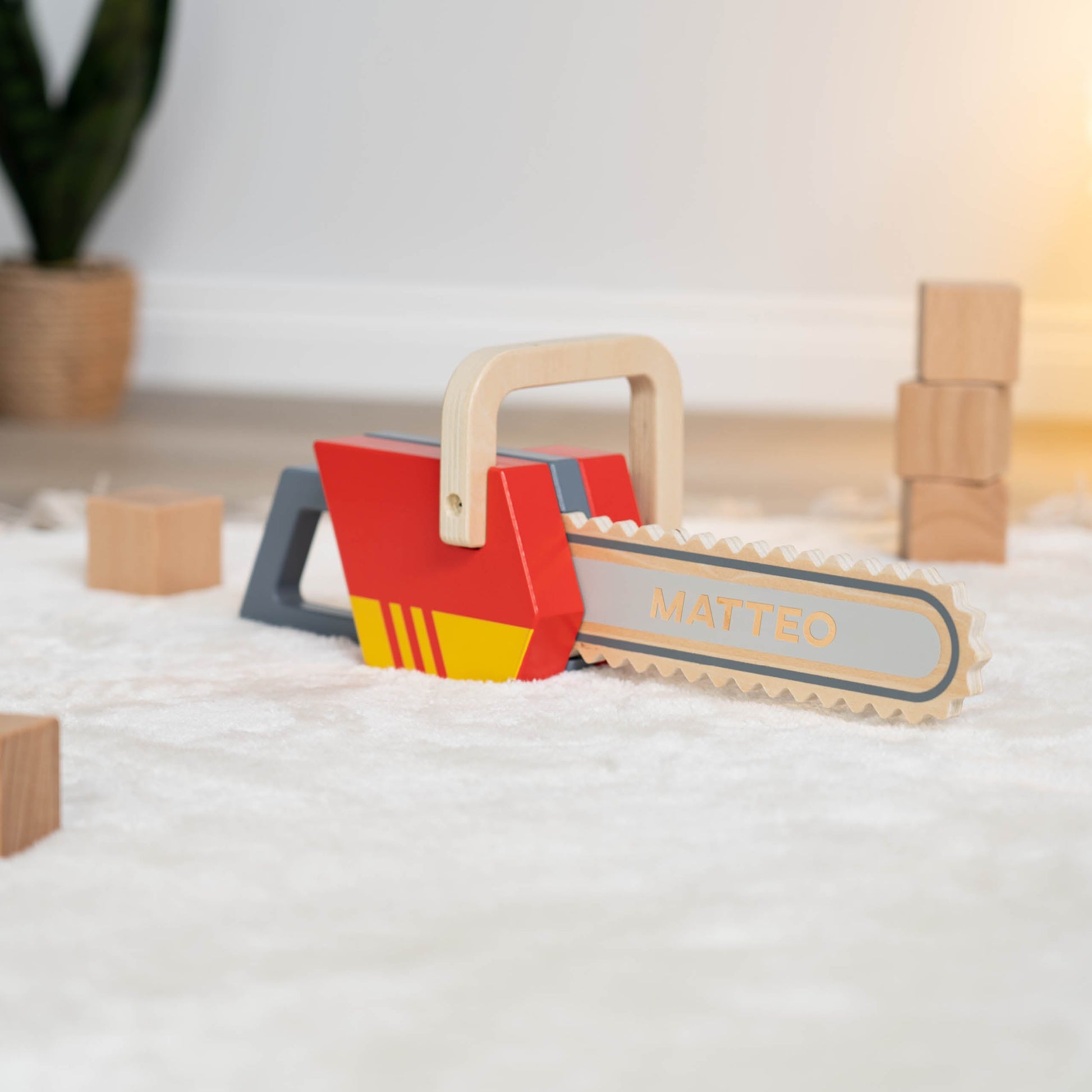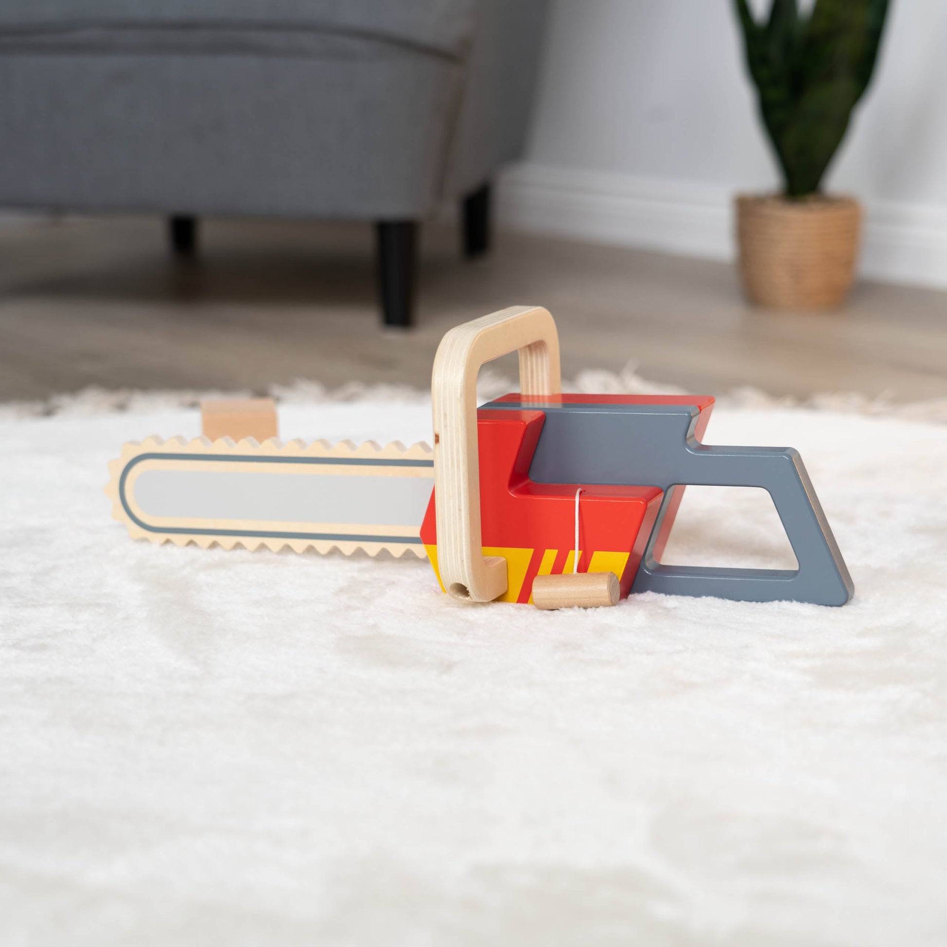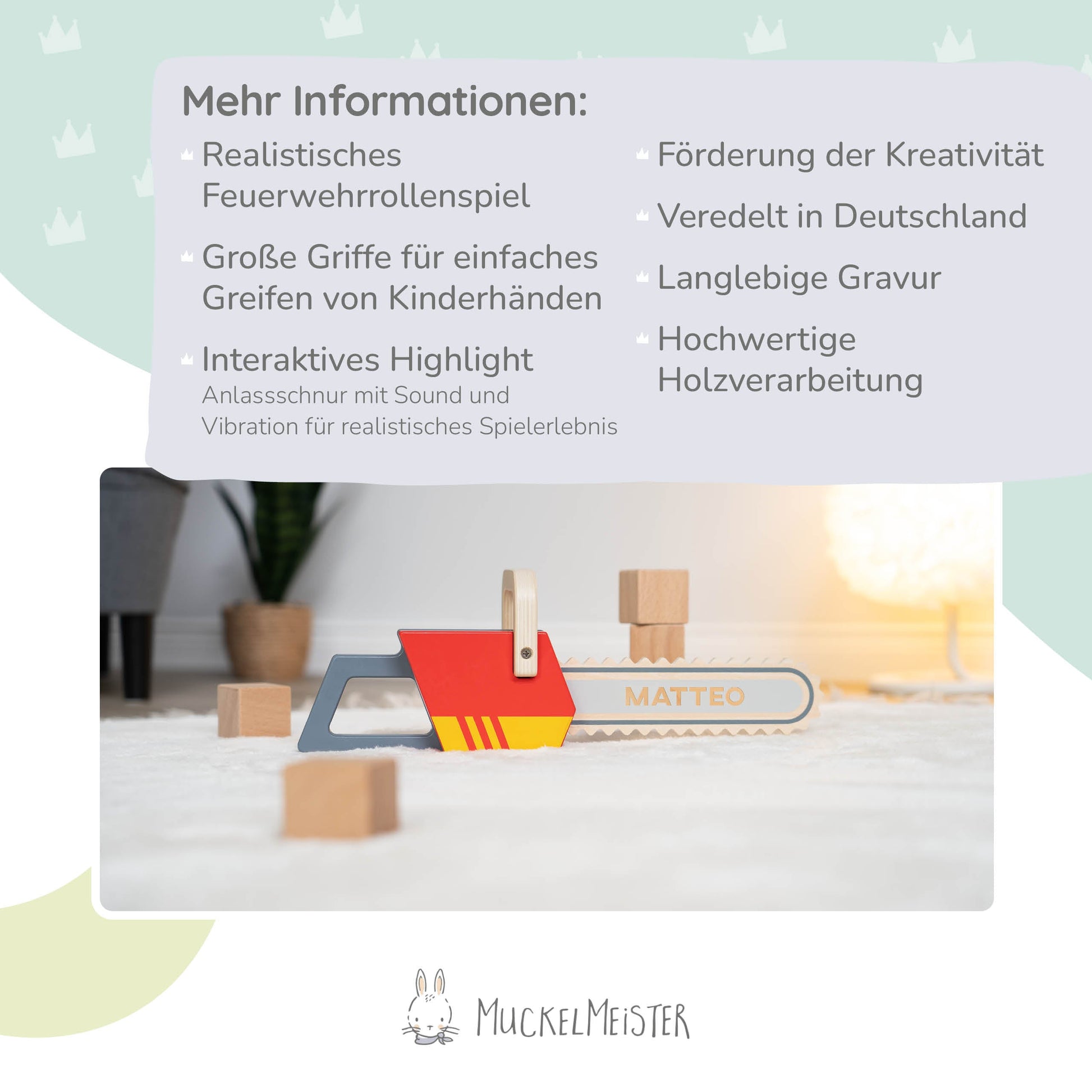 Was für eine Säge! Mit dieser coolen Kettensäge aus Holz können kleine Feuerwehrleute in die Rolle der Alltagshelden schlüpfen und realistische Rettungseinsätze spielen. Die großen Griffe sind perfekt für Kinderhände geeignet und die Anlassschnur sorgt mit Sound und Vibration für noch mehr Spannung. Ein absolutes Highlight für alle kleinen Feuerwehrfans!