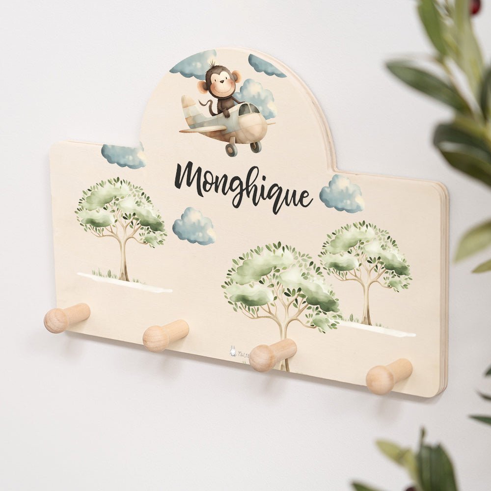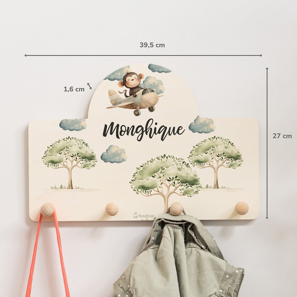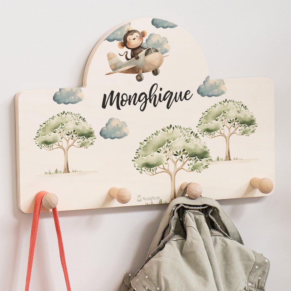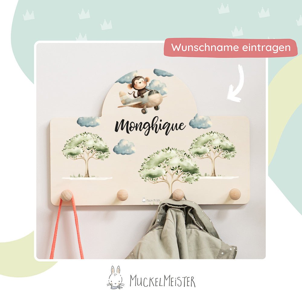 Kindergarderobe Personalisiert - Affe im Flugzeug