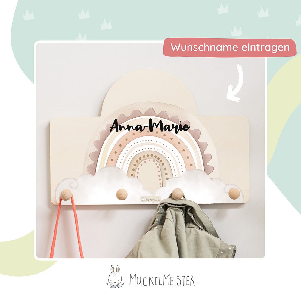Kindergarderobe Personalisiert - Regenbogen rosa