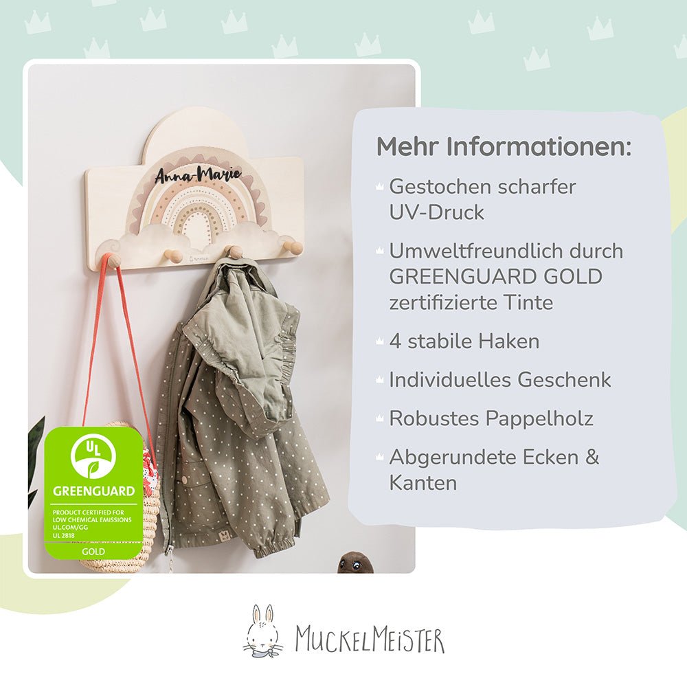 Personalisierung: Mache die Garderobe einzigartig, indem du sie mit dem Namen deines Kindes personalisieren lässt. Der hochwertige Druck verleiht der Garderobe eine besondere Note und sorgt dafür, dass sie unverwechselbar ist.