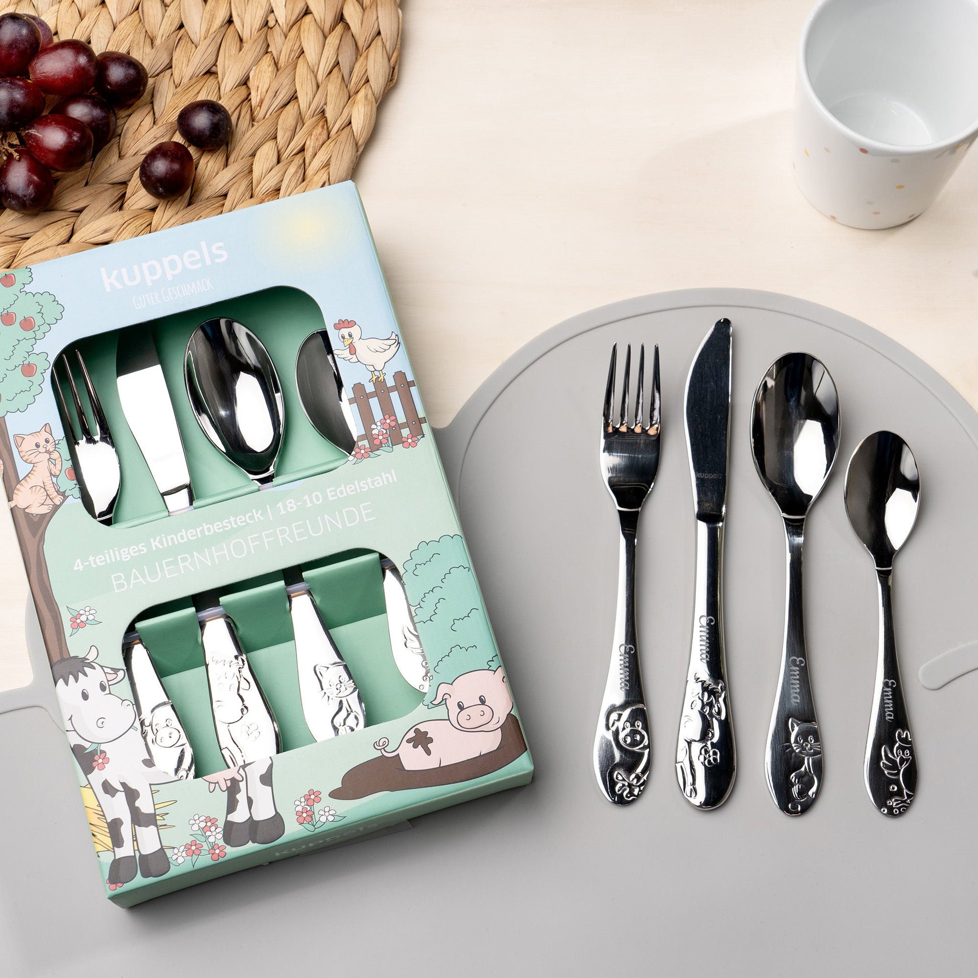 Kuppels Kinderbesteck mit Gravur Bauernhof
