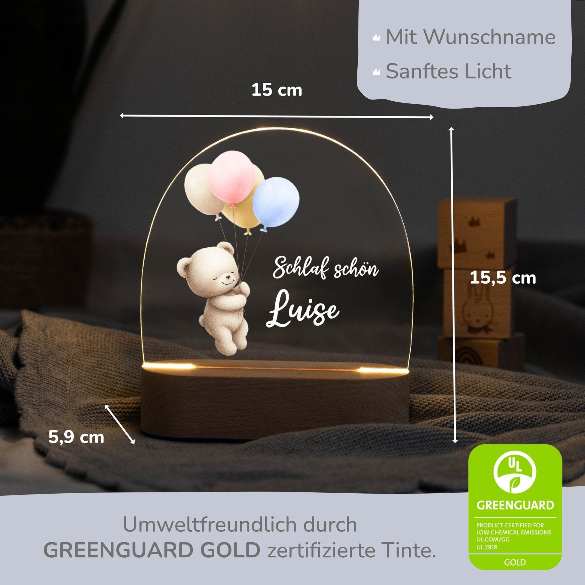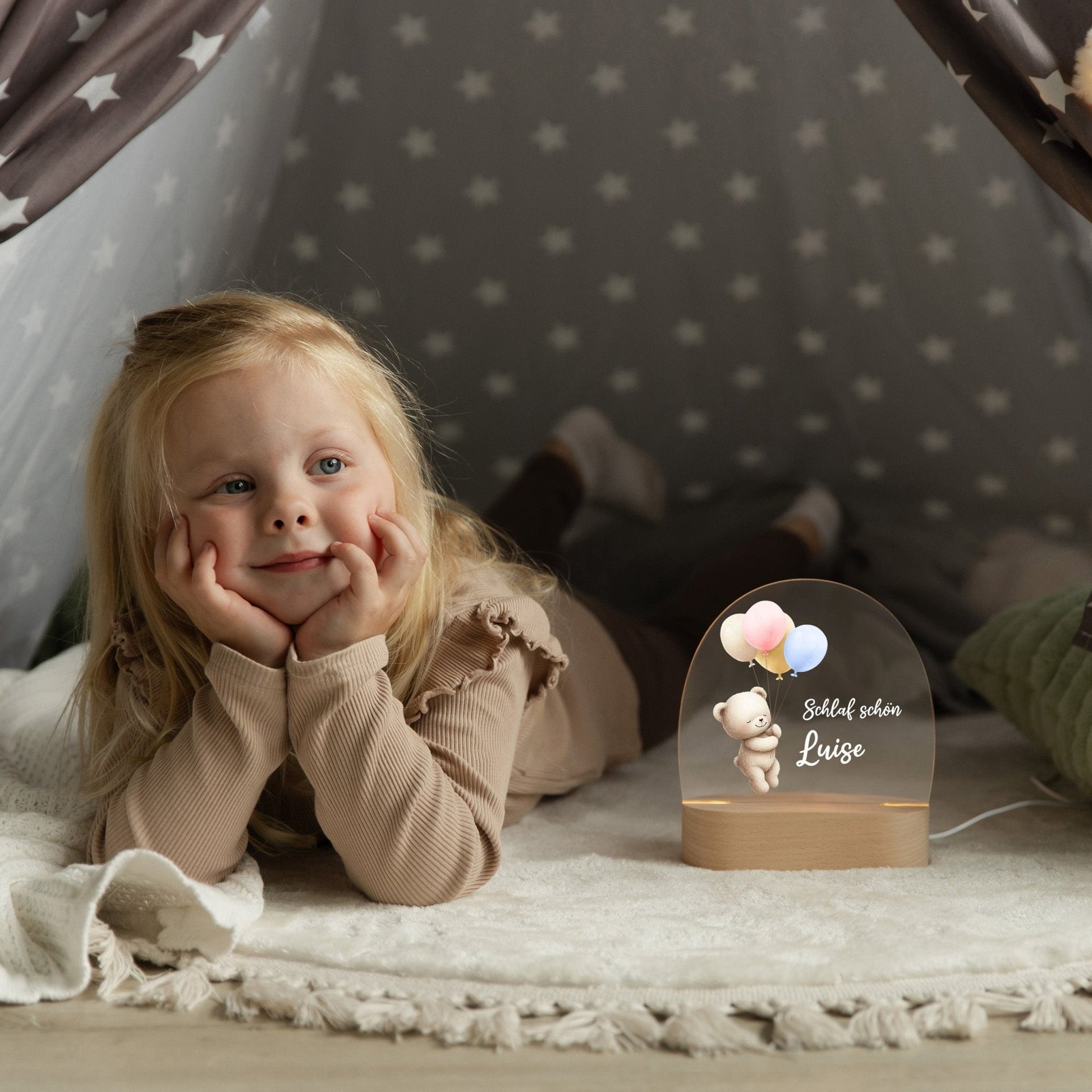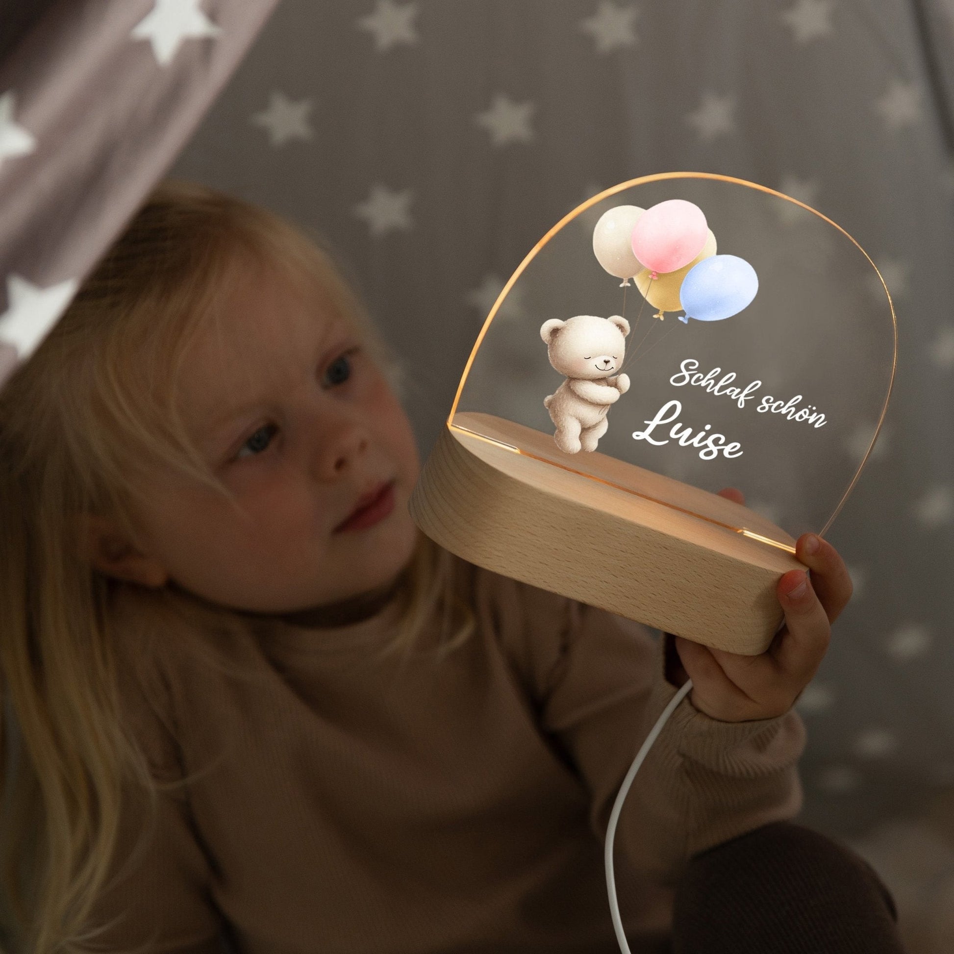Personalisiertes Nachtlicht „Ballon-Bärchen“ – Liebevolles Licht für kleine Träumer 🐻🎈