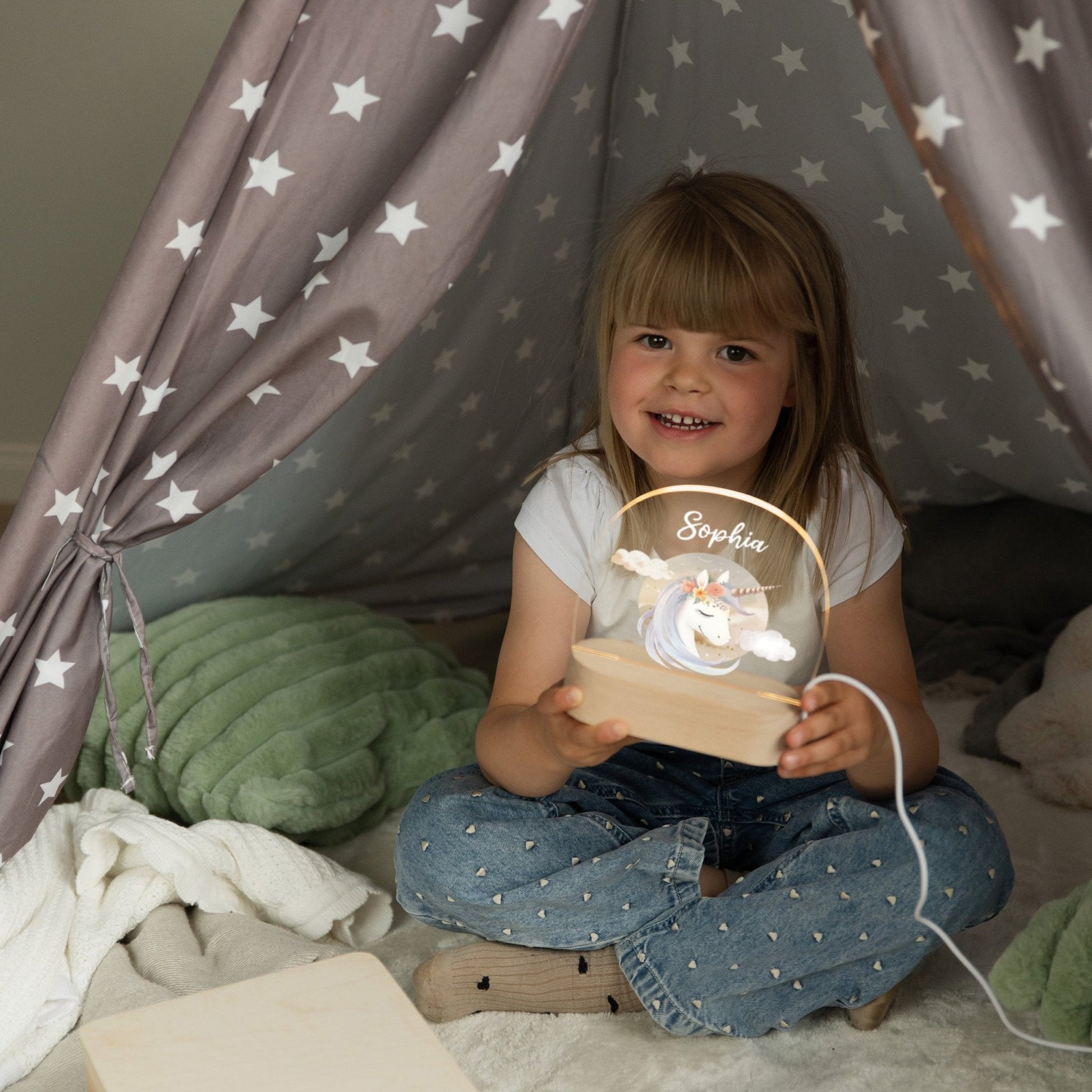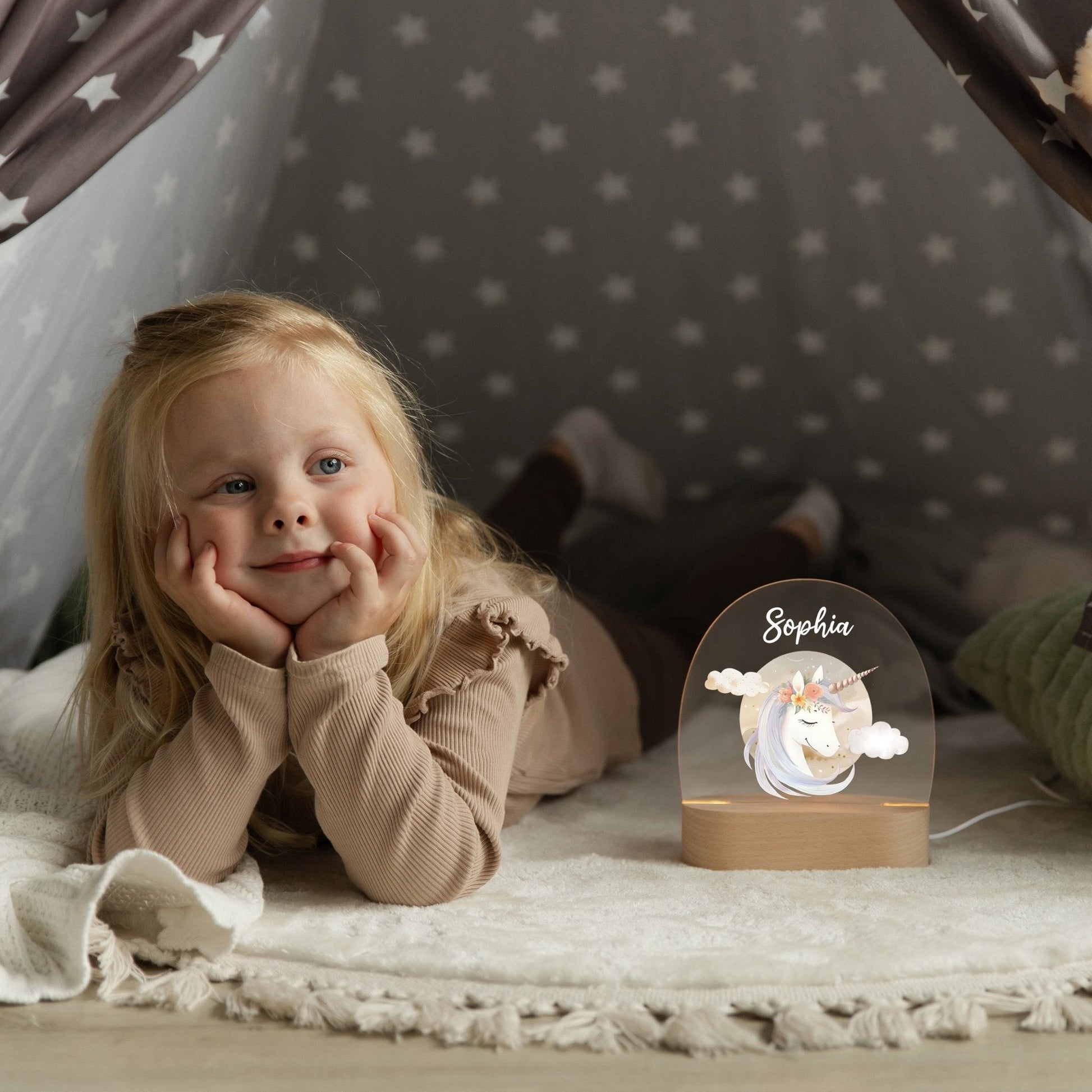 Personalisiertes Nachtlicht „Boho-Einhorn“ – Traumhaftes Licht für kleine Fantasie-Fans 🦄✨