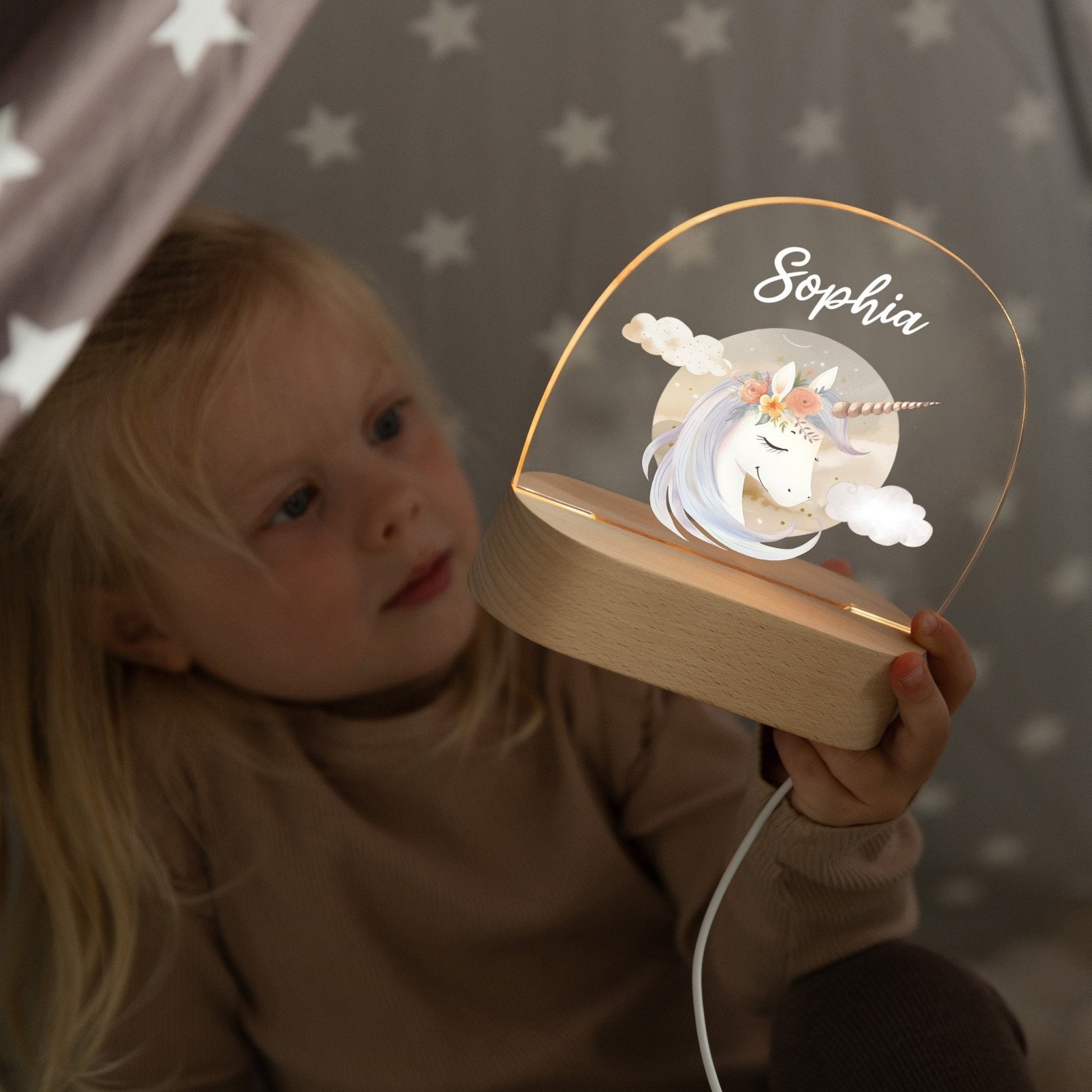 LED Nachtlicht Kinder personalisiert - Boho Einhorn