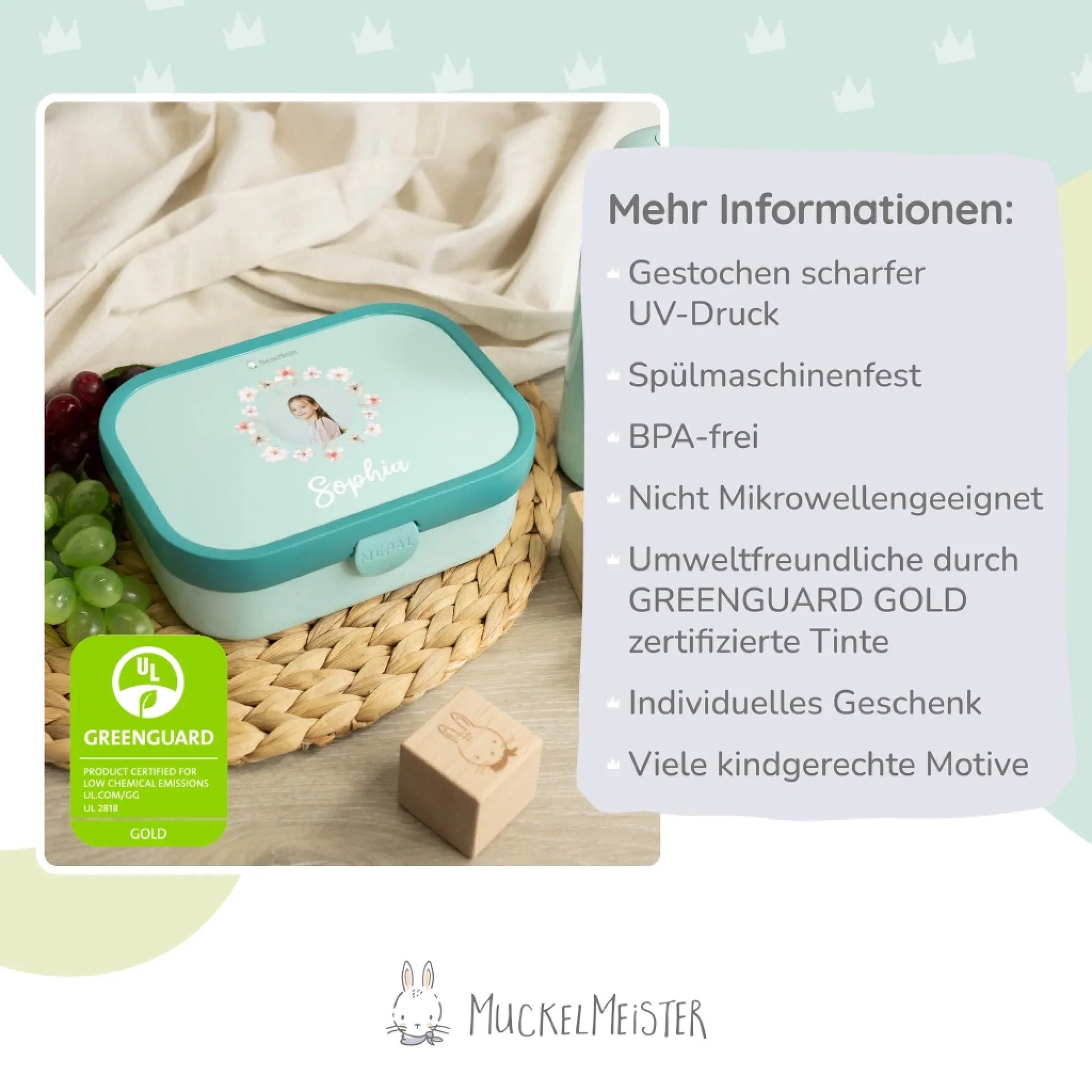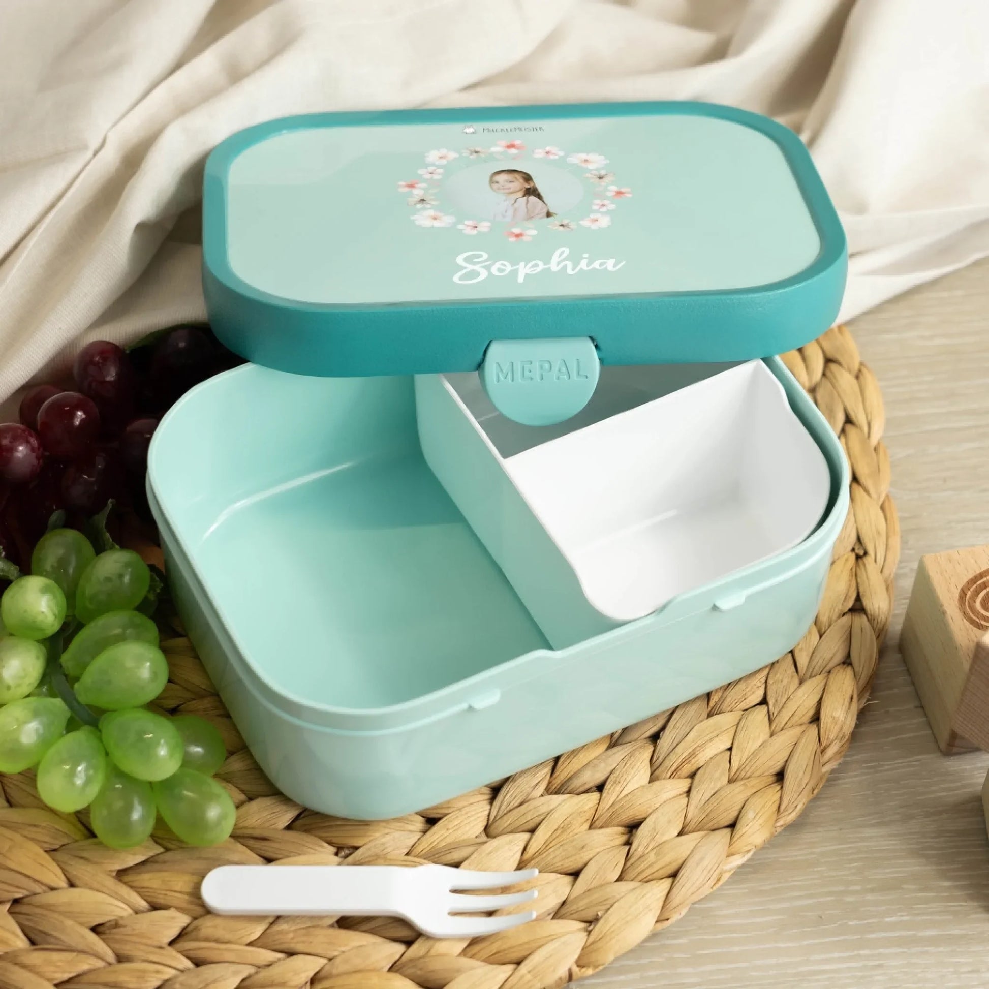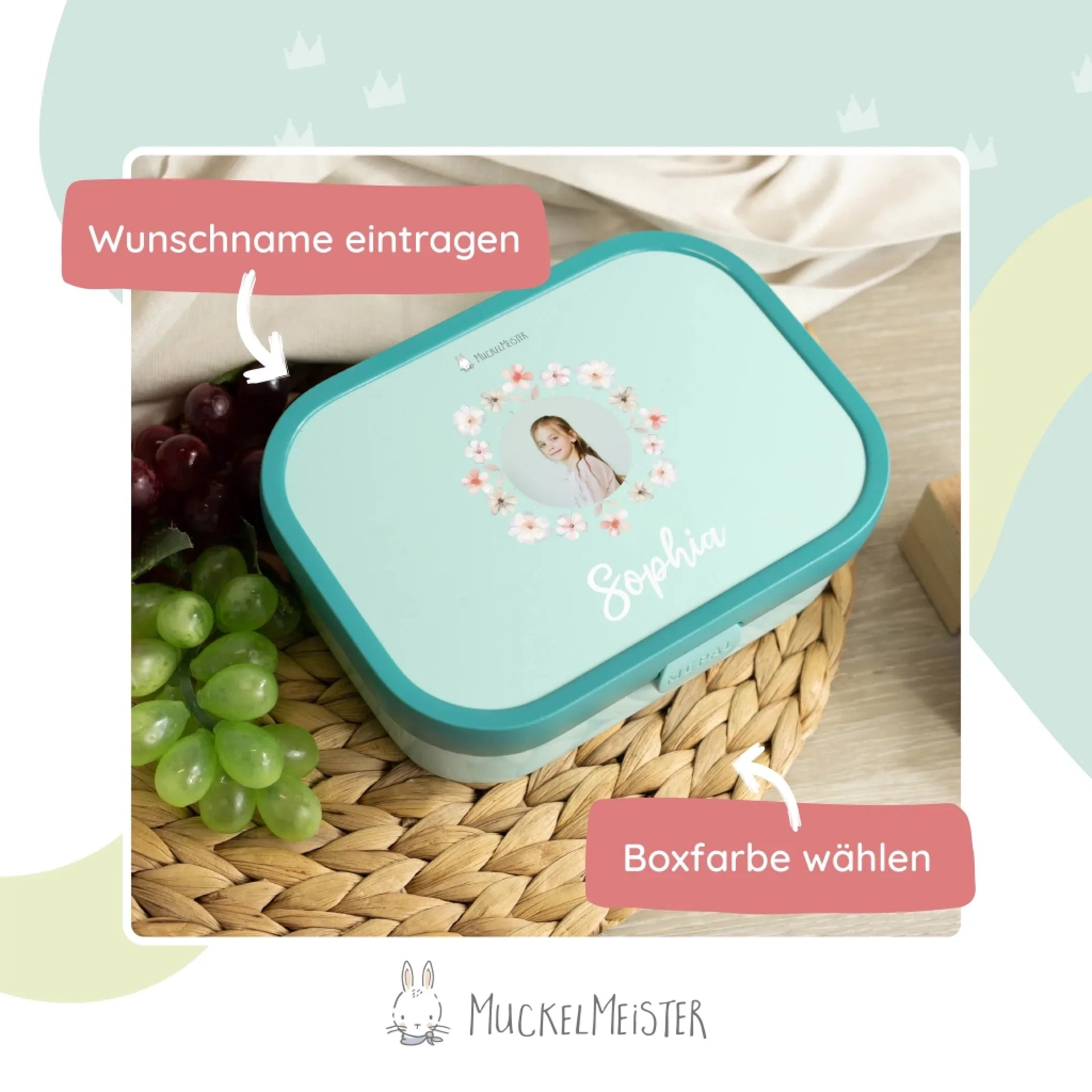 Was macht eine Brotdose für Kinder zu etwas ganz Besonderem? Es ist die Kombination aus Funktionalität, liebevollem und kindgerechten Design und einer ganz persönlichen Note. All diese Punkte bringt unsere Campus Lunchbox im Blumen Stil mit Foto mit.