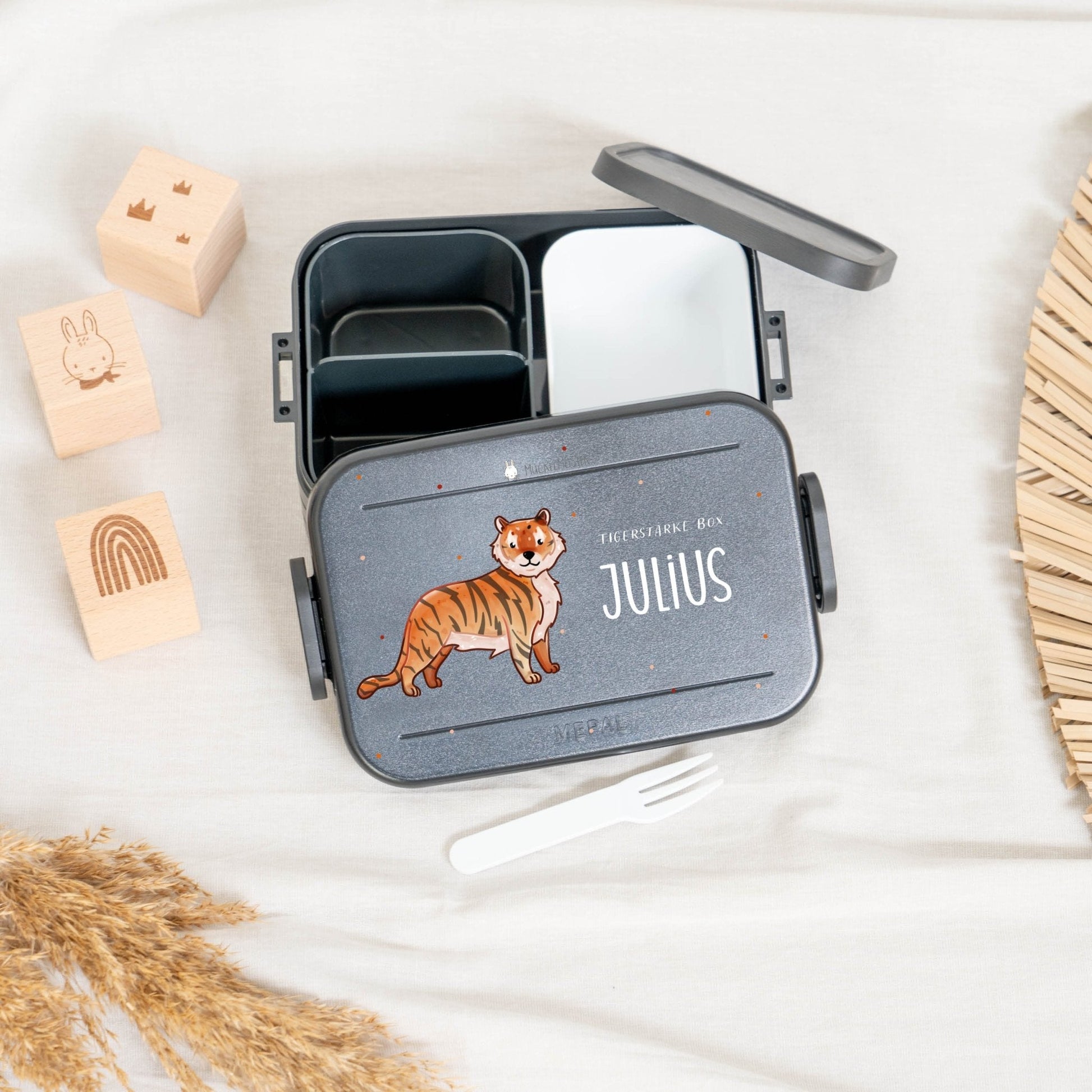 Mach die Mahlzeiten deines Kindes noch aufregender mit unserer personalisierten Mepal Brotdose mit Bento Einsatz! Diese vielseitige Brotdose bietet nicht nur genügend Platz für eine ausgewogene Mahlzeit, sondern auch die Möglichkeit, sie mit einem Namen und einem von 16 verschiedenen Muckelfreunde-Tieren zu personalisieren.