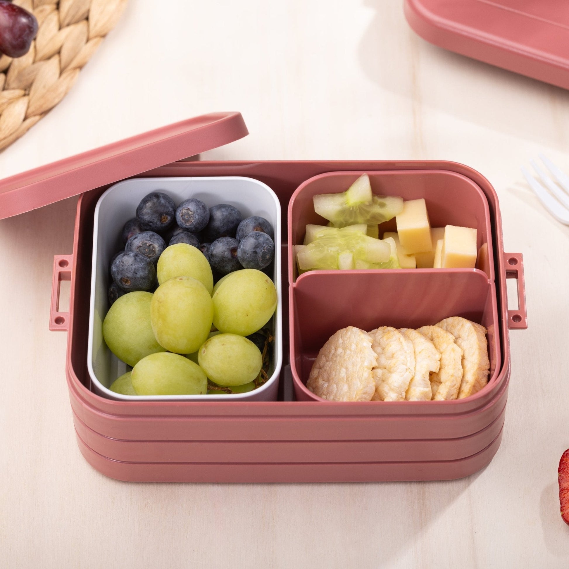 Bento-Einsätze und Gabel: Die praktischen, herausnehmbaren Bento-Einsätze ermöglichen eine einfache Aufteilung der Lebensmittel, während die mitgelieferte Gabel das Set vervollständigt.