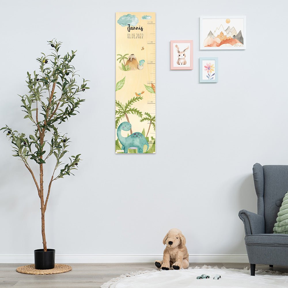Tauche ein in die faszinierende Welt der Dinosaurier mit unserer Holz-Messlatte mit “ Urzeit Dino “ Motiv! Diese liebevoll gestaltete Messlatte ist nicht nur ein praktisches Werkzeug, um das Wachstum deines kleinen Entdeckers zu verfolgen, sondern auch eine spannende Dekoration, die jedes Kinderzimmer mit Abenteuerlust und Fantasie erfüllt.