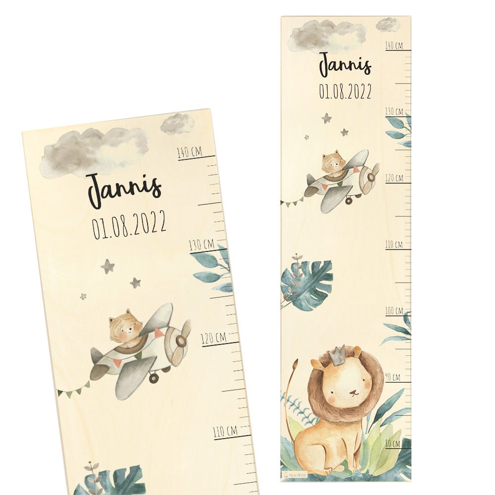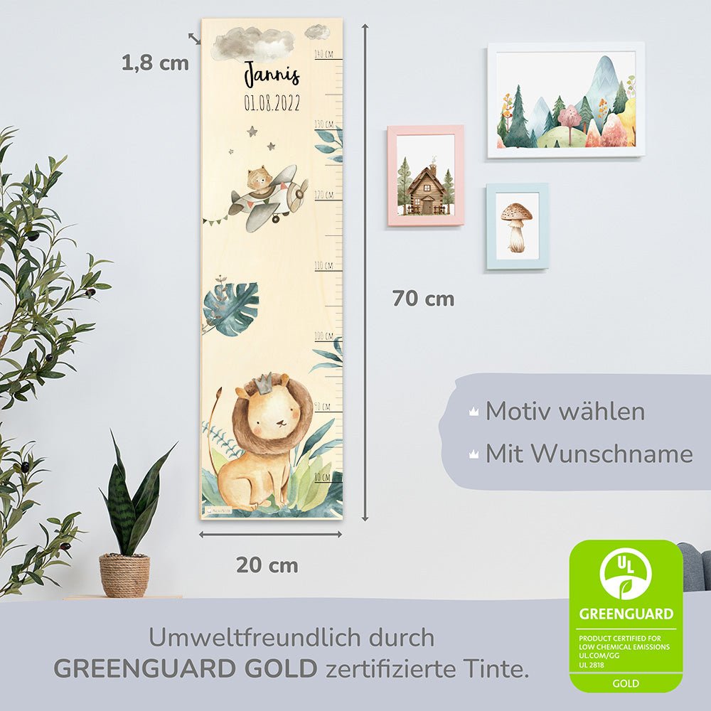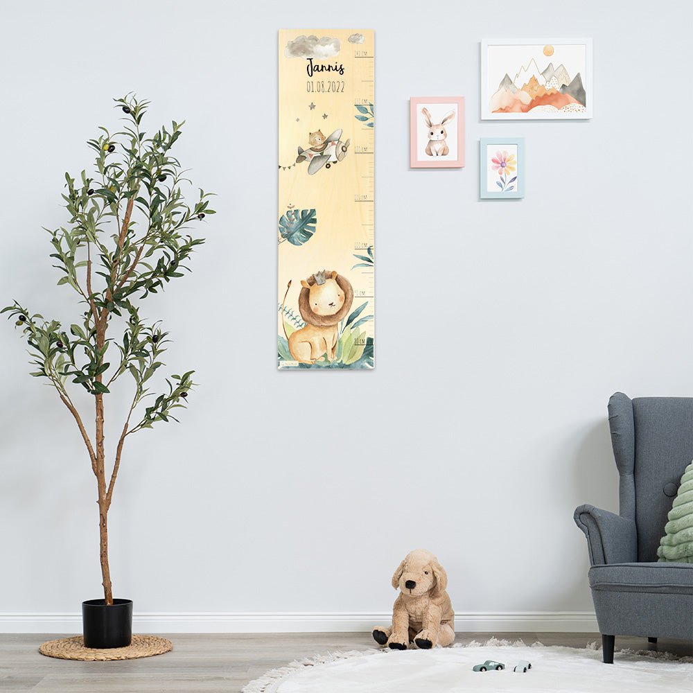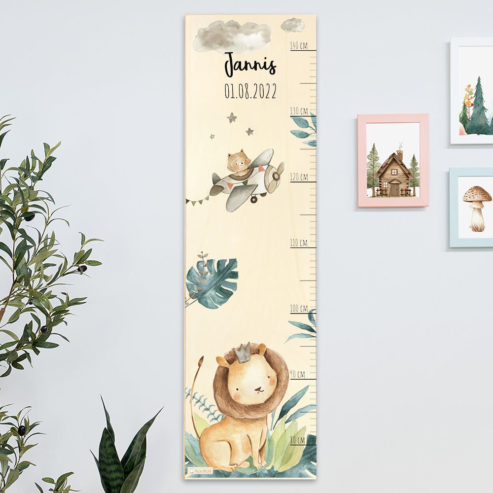 Mache das Messen zu einem lustigen Abenteuer mit unserer wunderschönen Holz-Messlatte mit Löwen im Dschungel Motiv! Diese liebevoll gestaltete Messlatte ist nicht nur ein praktisches Werkzeug, um das Wachstum deines Kindes zu verfolgen, sondern auch eine bezaubernde Dekoration, die jedes Kinderzimmer mit Freude und Fantasie erfüllt.
