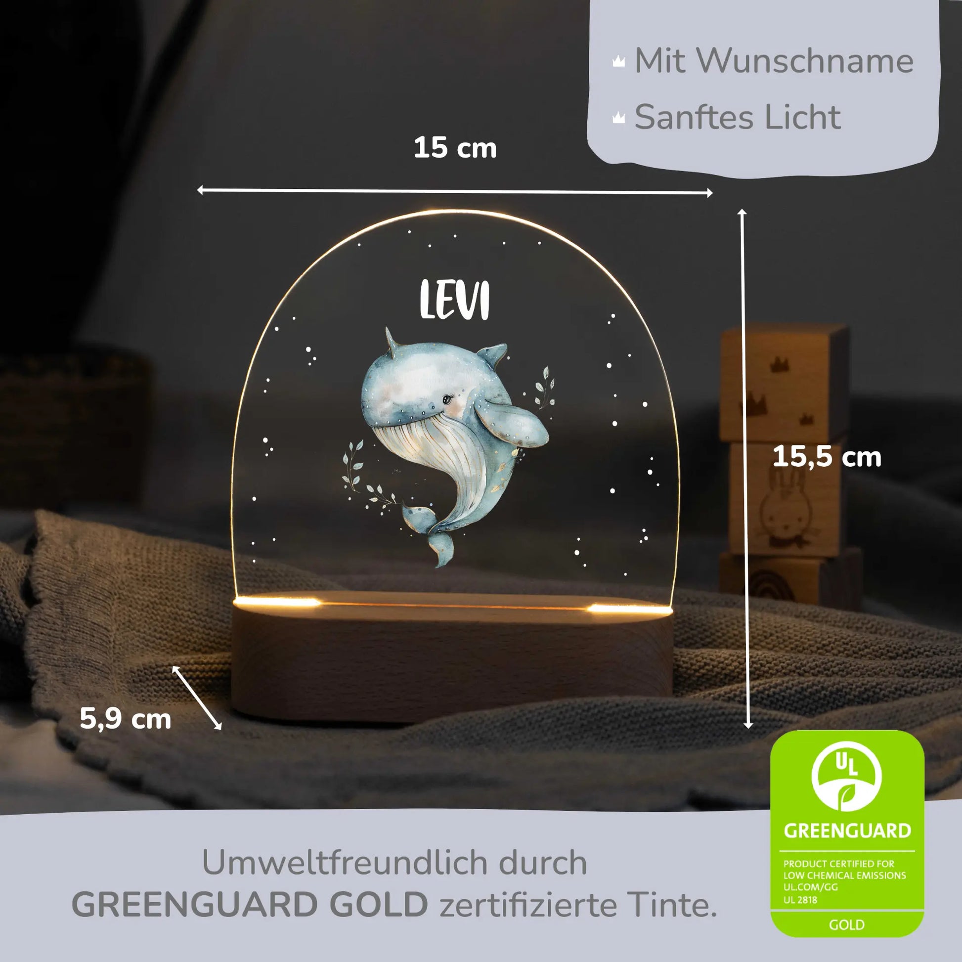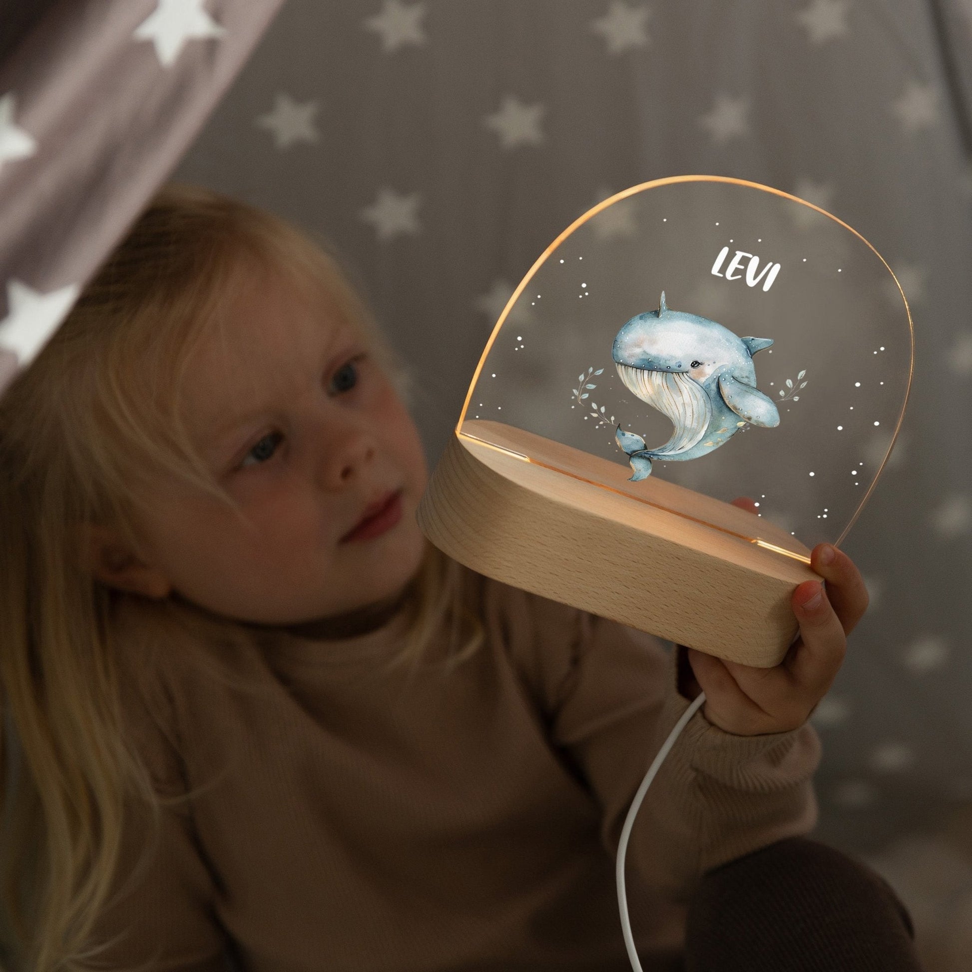 Individuelles Design: Das Nachtlicht besteht aus einem hochwertigen Acrylshape, das mit einem brillanten UV-Druck personalisiert wird. So kannst du das Nachtlicht ganz nach den Vorlieben deines Kindes gestalten, was es zu einem einzigartigen Schmuckstück im Kinderzimmer macht.