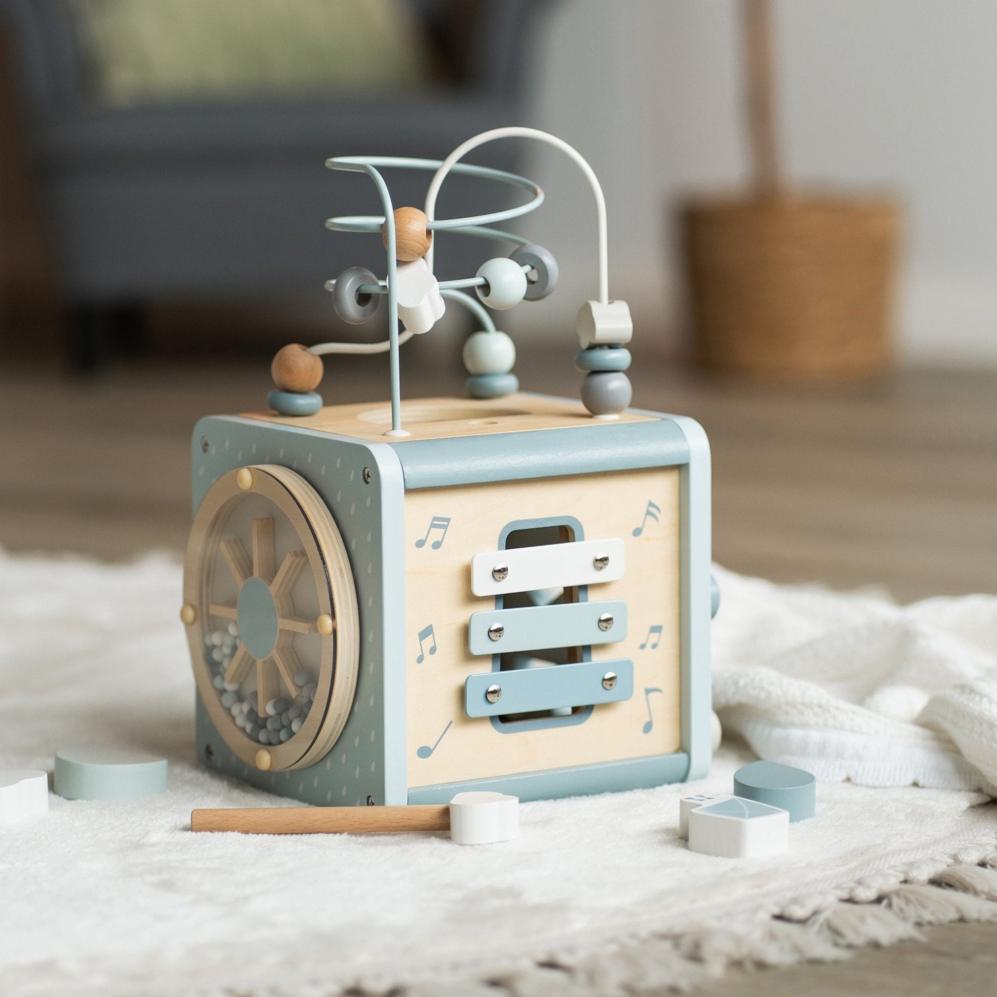 Dieser Motorikwürfel steckt voller Entdeckungen 🎲✨ Er vereint Schiebespiele, Steckformen, ein kleines Xylophon und ein Perlenrad – alles in einem liebevoll gestalteten Spielwürfel, der nicht nur sinnvoll, sondern auch richtig hübsch ist.