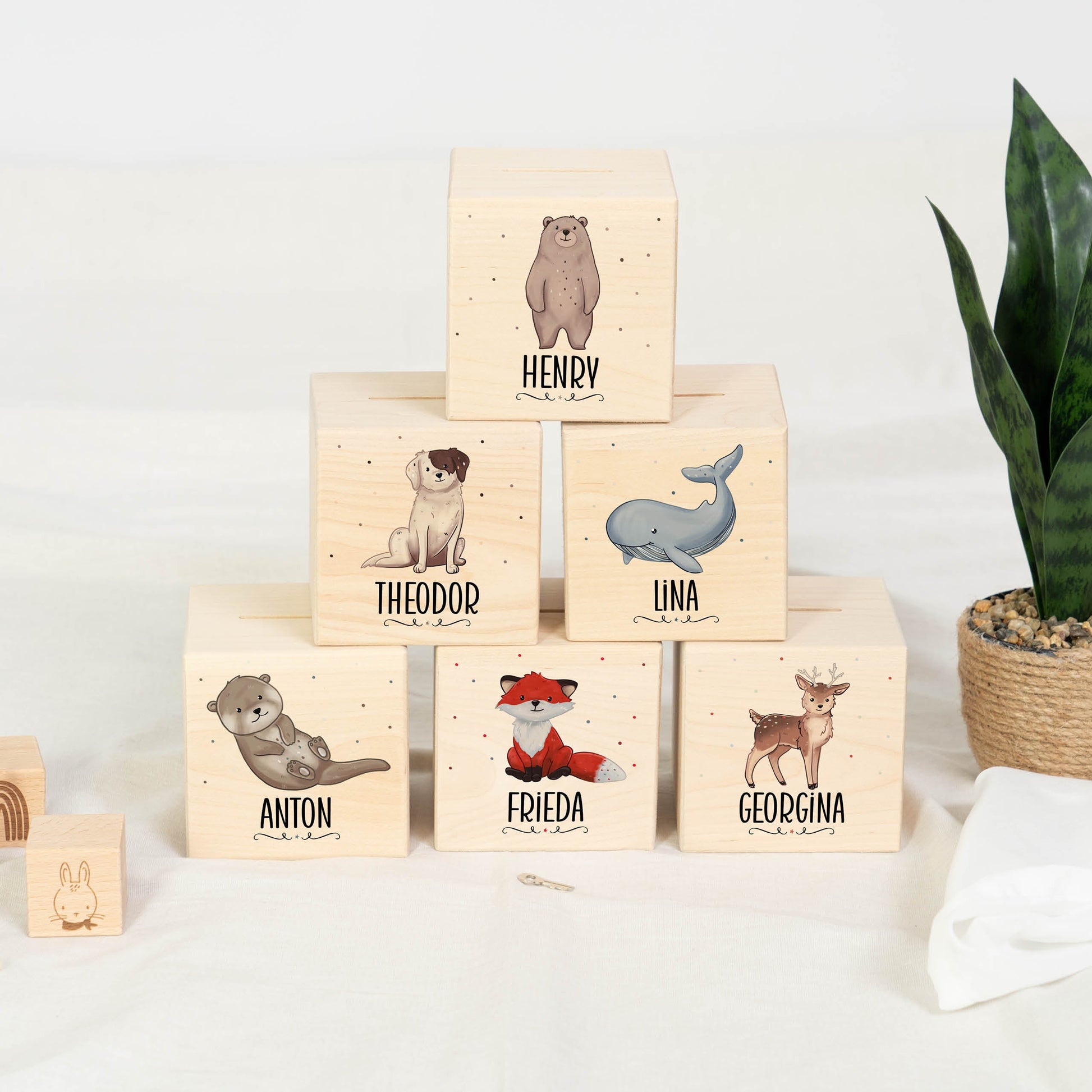 Spardosepersonalisiert - Ein liebevolles Geschenk zur Geburt aus Holz