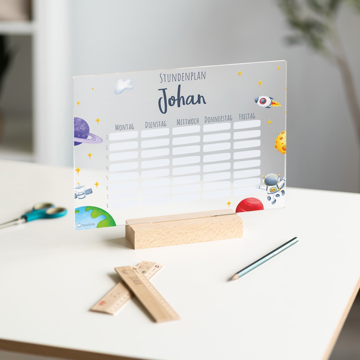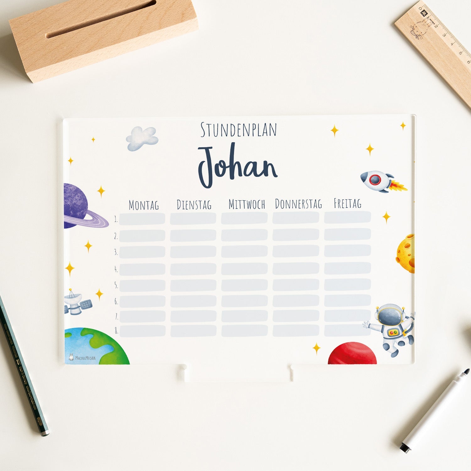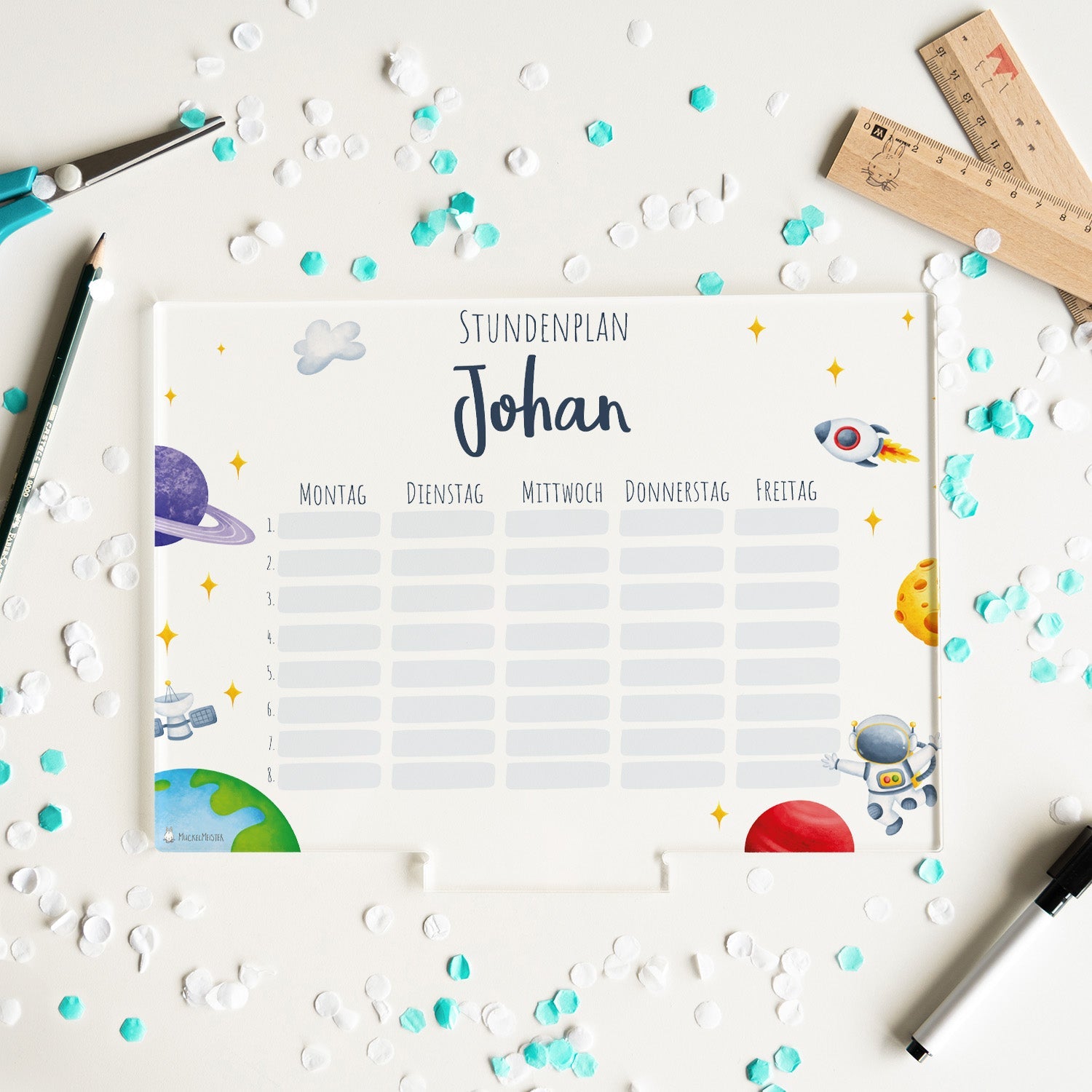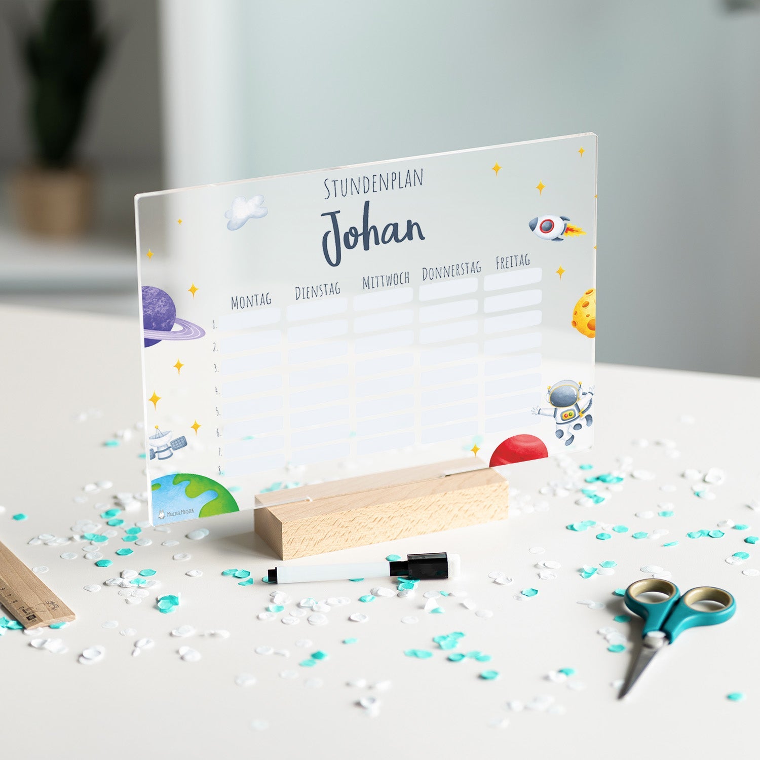 Bringe Ordnung und Abenteuer in den Alltag deines Kindes mit unserem abwischbaren Stundenplan aus Acryl! Perfekt für eine effiziente und fantasievolle Wochenplanung. Bestelle jetzt und mache die Organisation zum intergalaktischen Vergnügen!