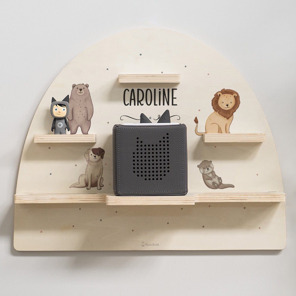 Personalisierbares Tonie-Regal aus Holz – Mit Muckelfreunden und Namensdruck