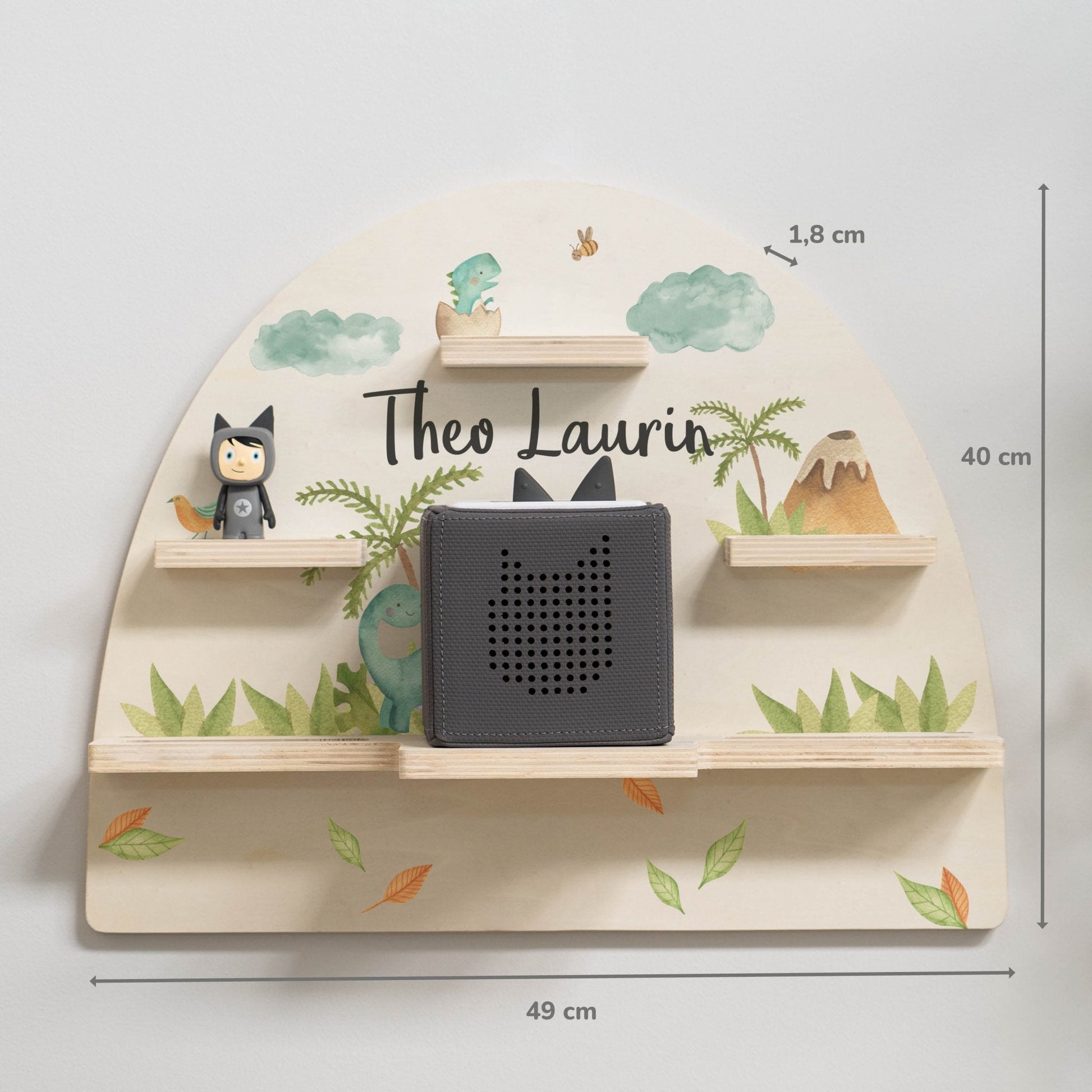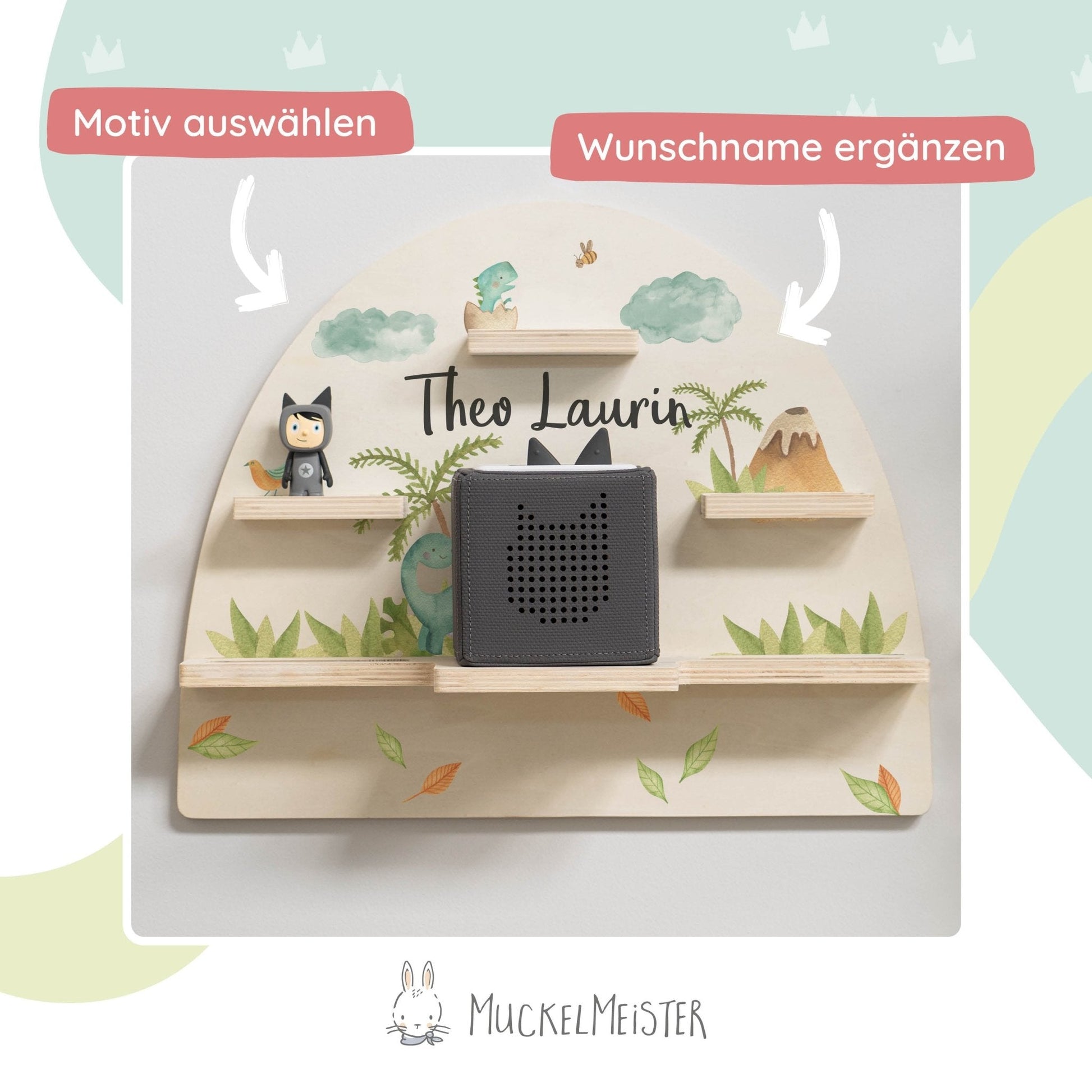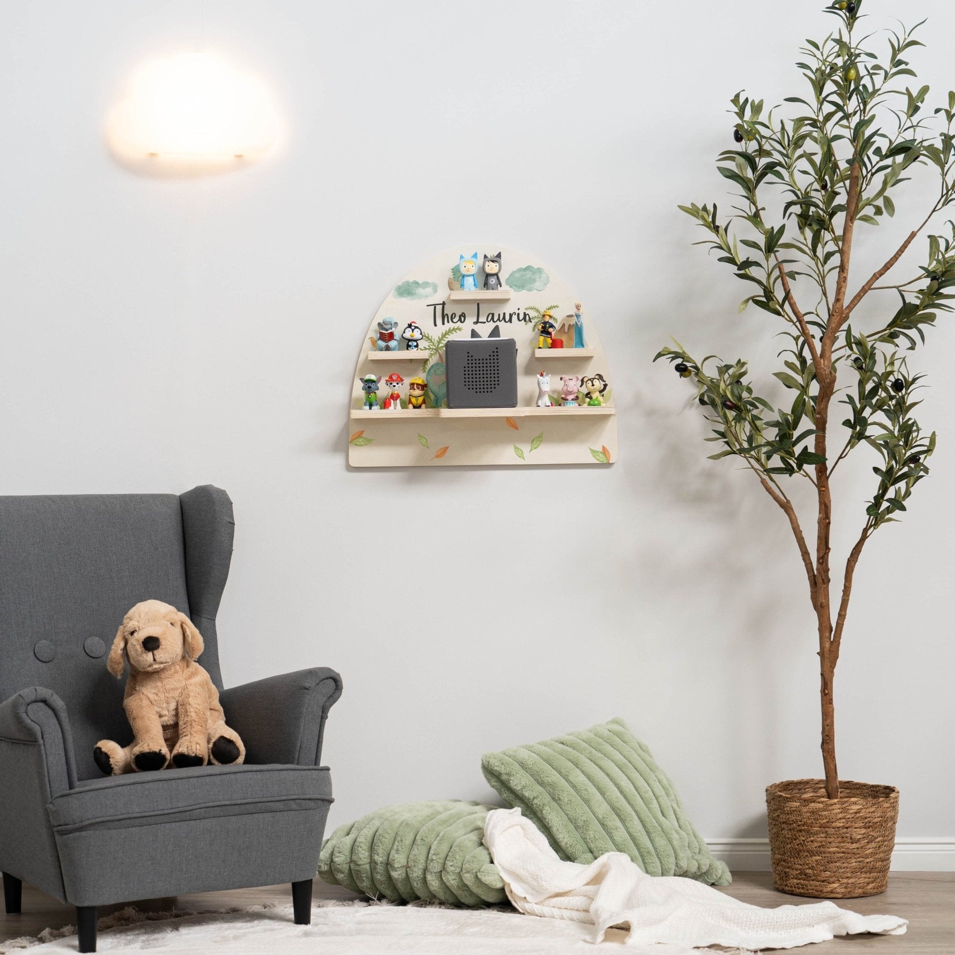 Auf der Suche nach einer stilvollen und funktionalen Aufbewahrungslösung für die Tonie-Figuren deines Kindes? Unser Tonie Regal aus Holz mit einem bezaubernden Astronauten-Motiv ist die perfekte Wahl! Dieses liebevoll gestaltete Regal bietet nicht nur ausreichend Platz für die Tonie-Figuren, sondern ist auch ein charmantes Dekorationsstück, das jedes Kinderzimmer bereichert.